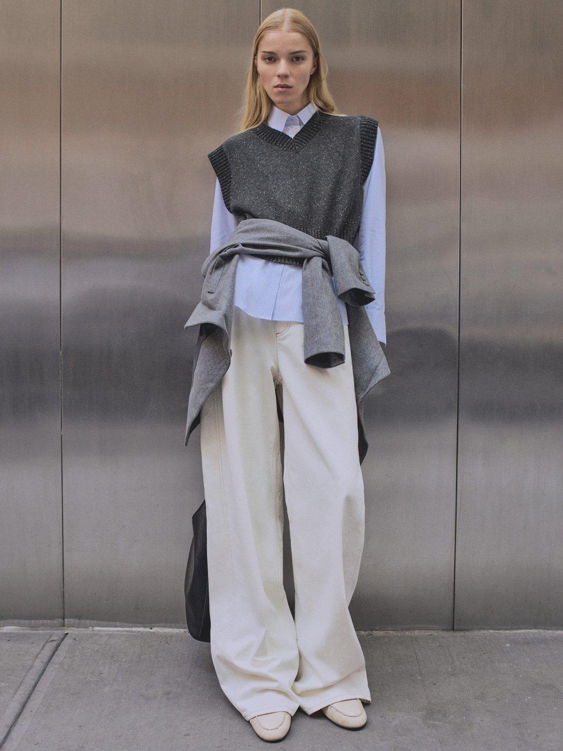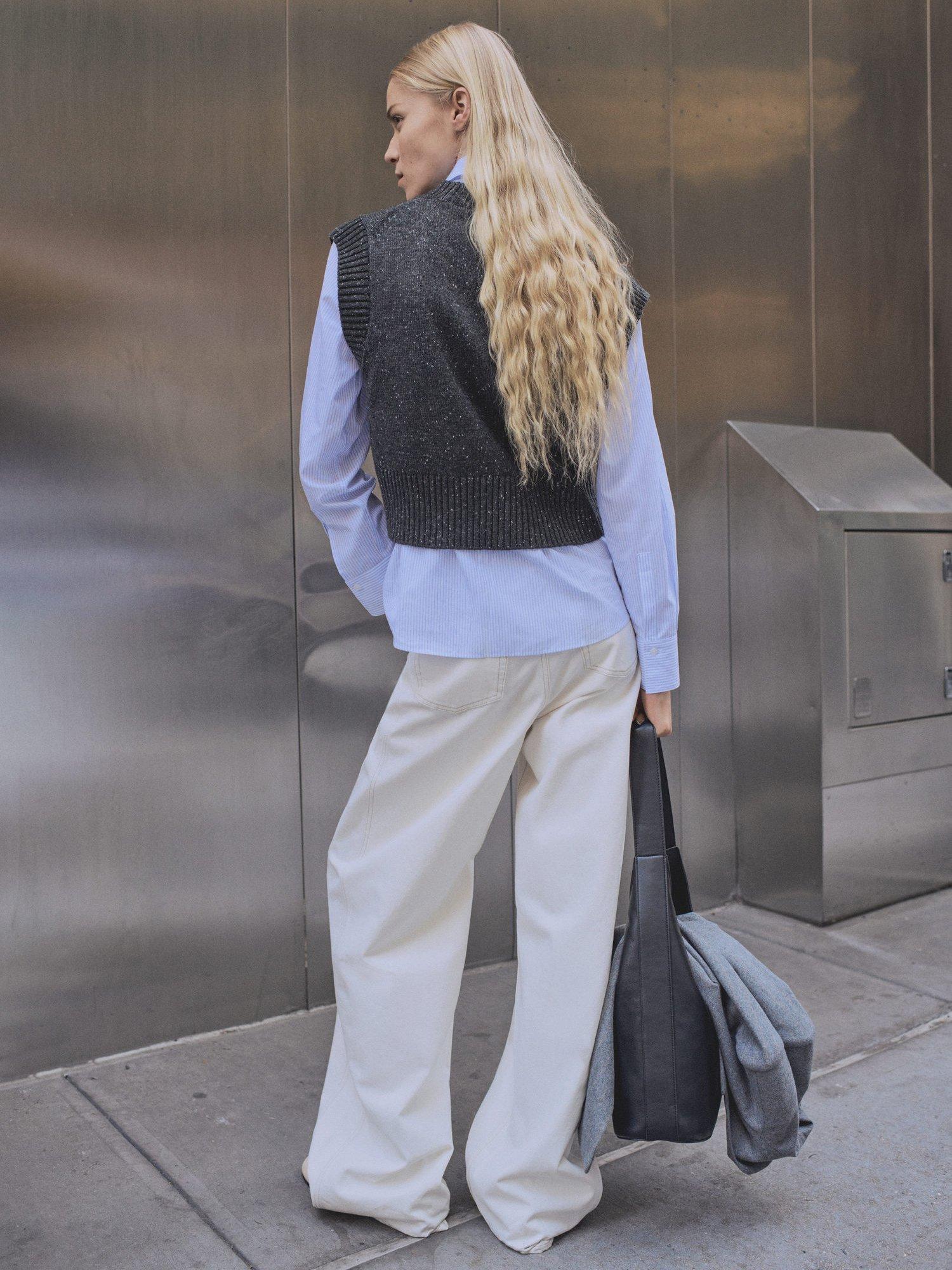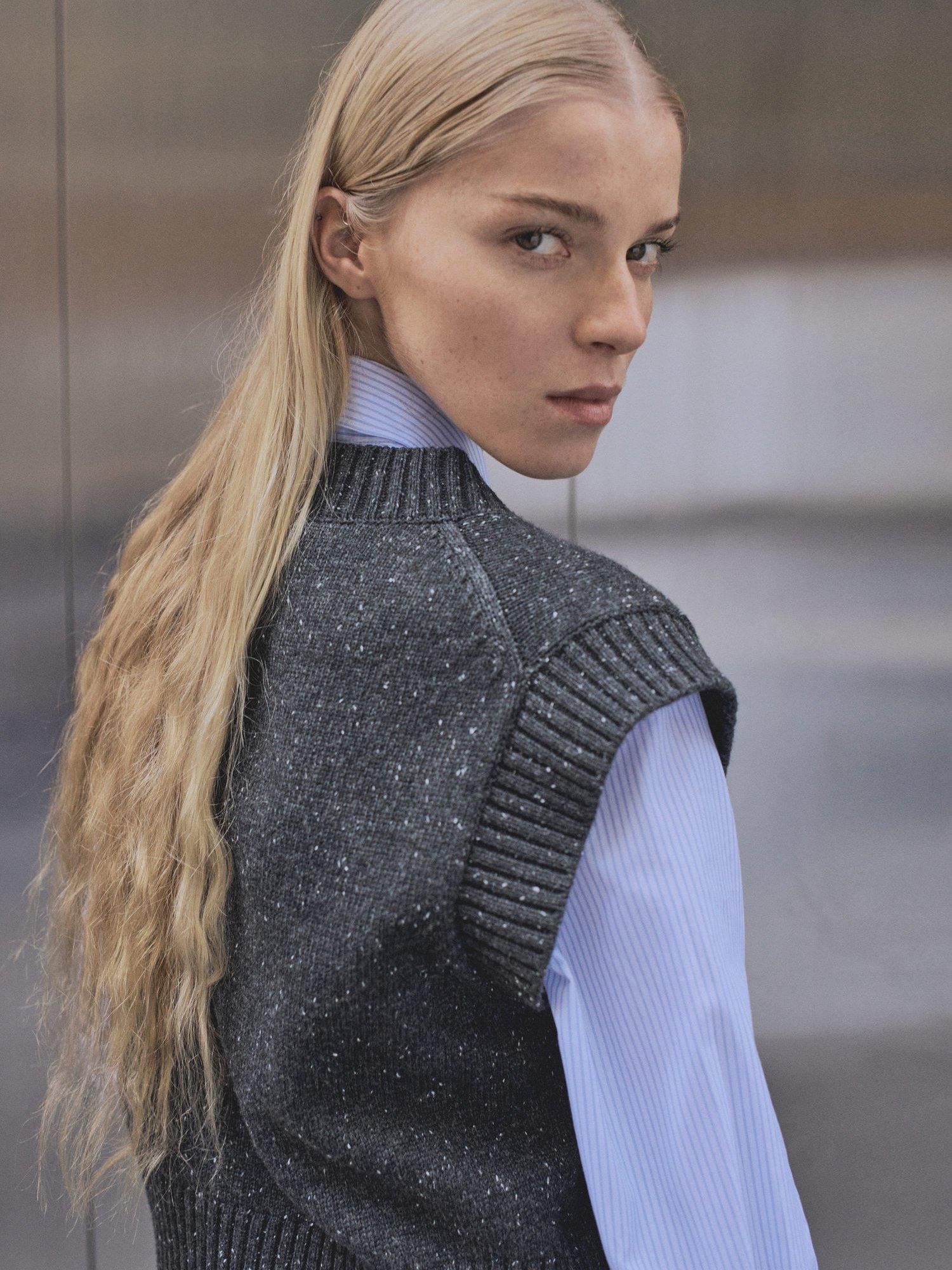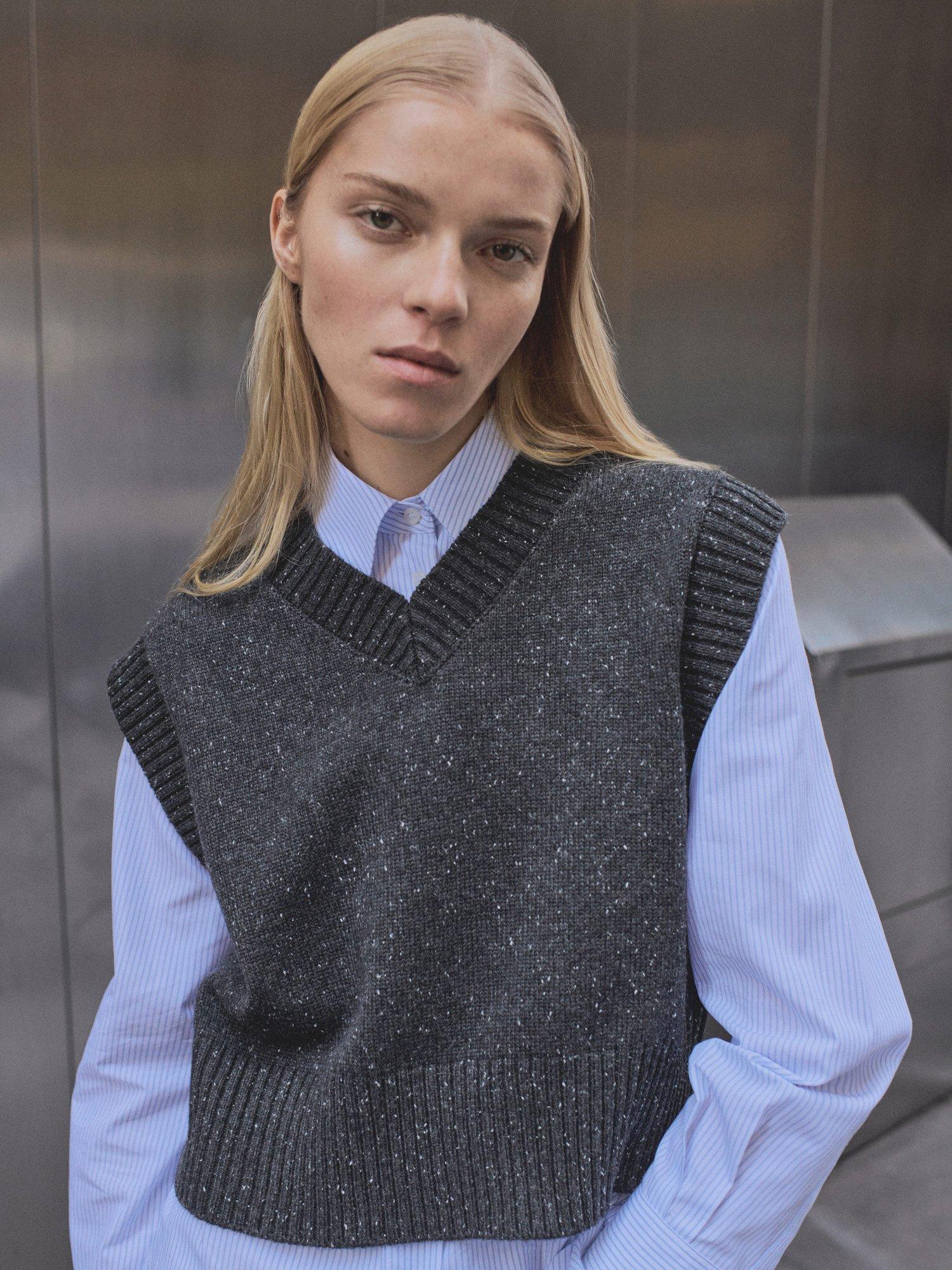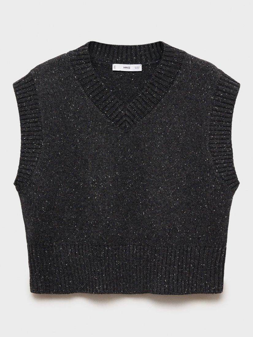 Lightly flecked throughout, this vest knit from Mango flatters the figure with its cropped cut. Framed with a v-neckline, it provides you with a functional yet stylish choice that you can wear alone or layered over shirts and tops.