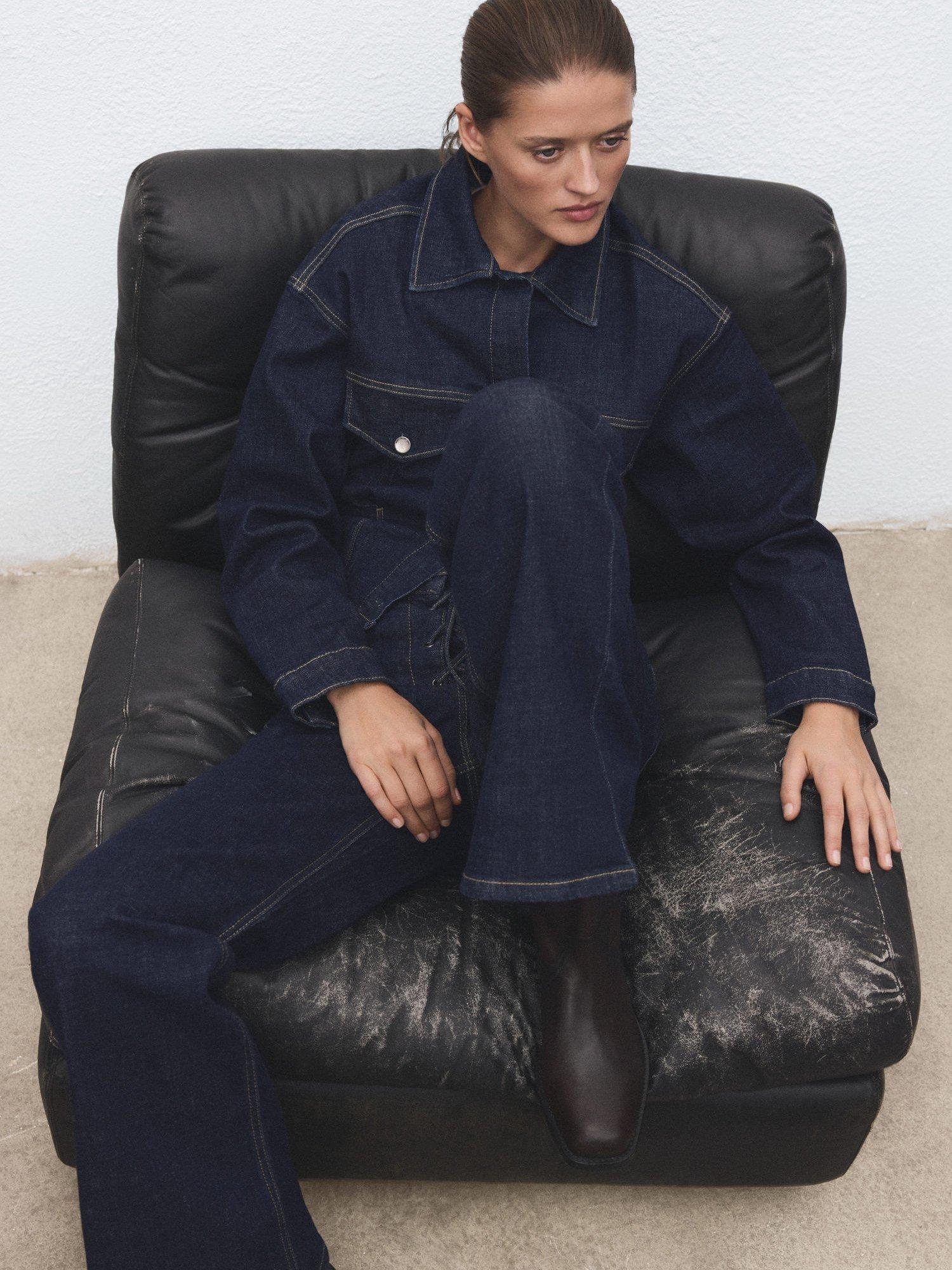 A nostalgic throwback pair of flared jeans from Mango. Made from a cotton blend with a comfortable mid rise and a drawstring, they fall to a full-length.