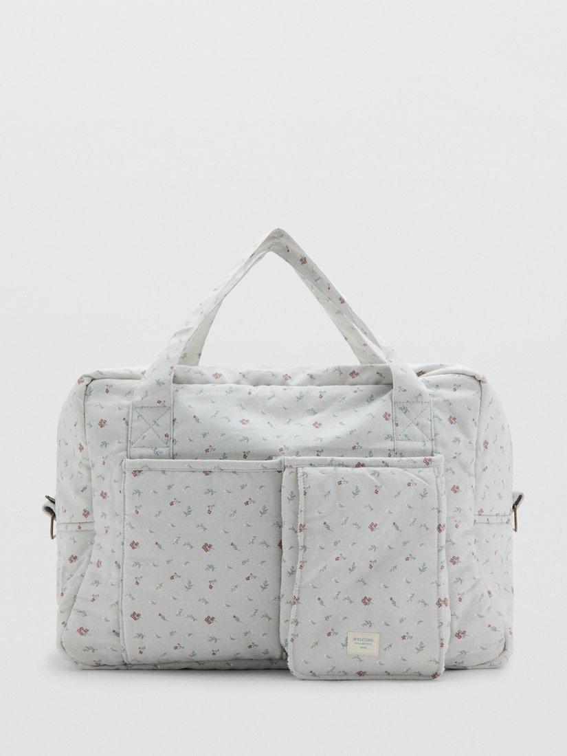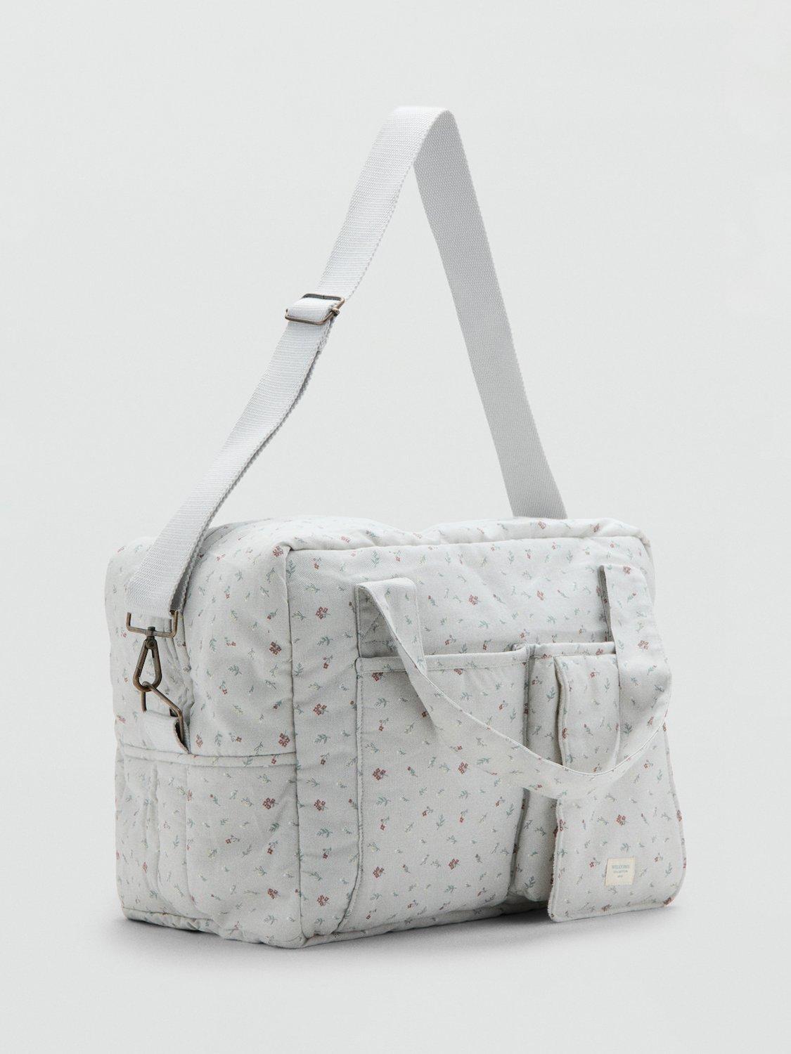 This floral cotton maternity bag from Mango features a practical square design with a front pocket, inner lining, and secure zip closure. Complete with a long adjustable strap.
