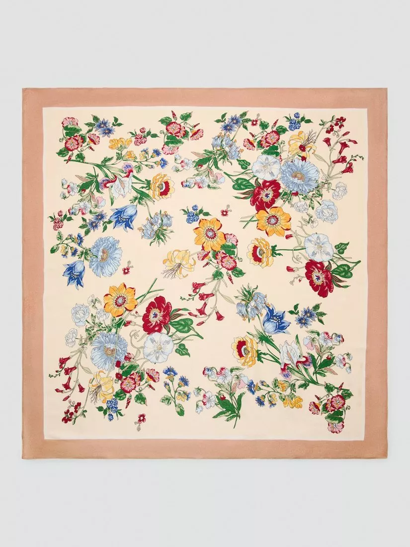 MangoFlowers Square Scarf, Beige/Multi