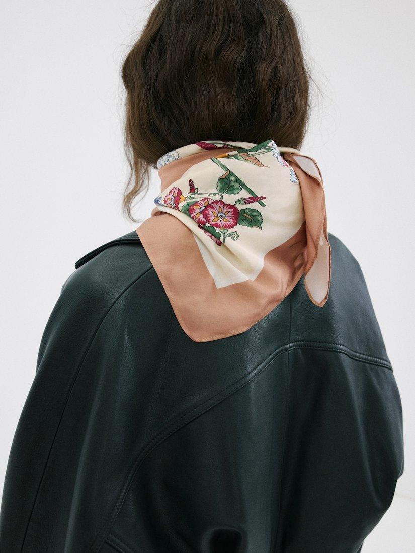 This lightweight viscose square scarf adds a striking floral twist to your everyday looks.