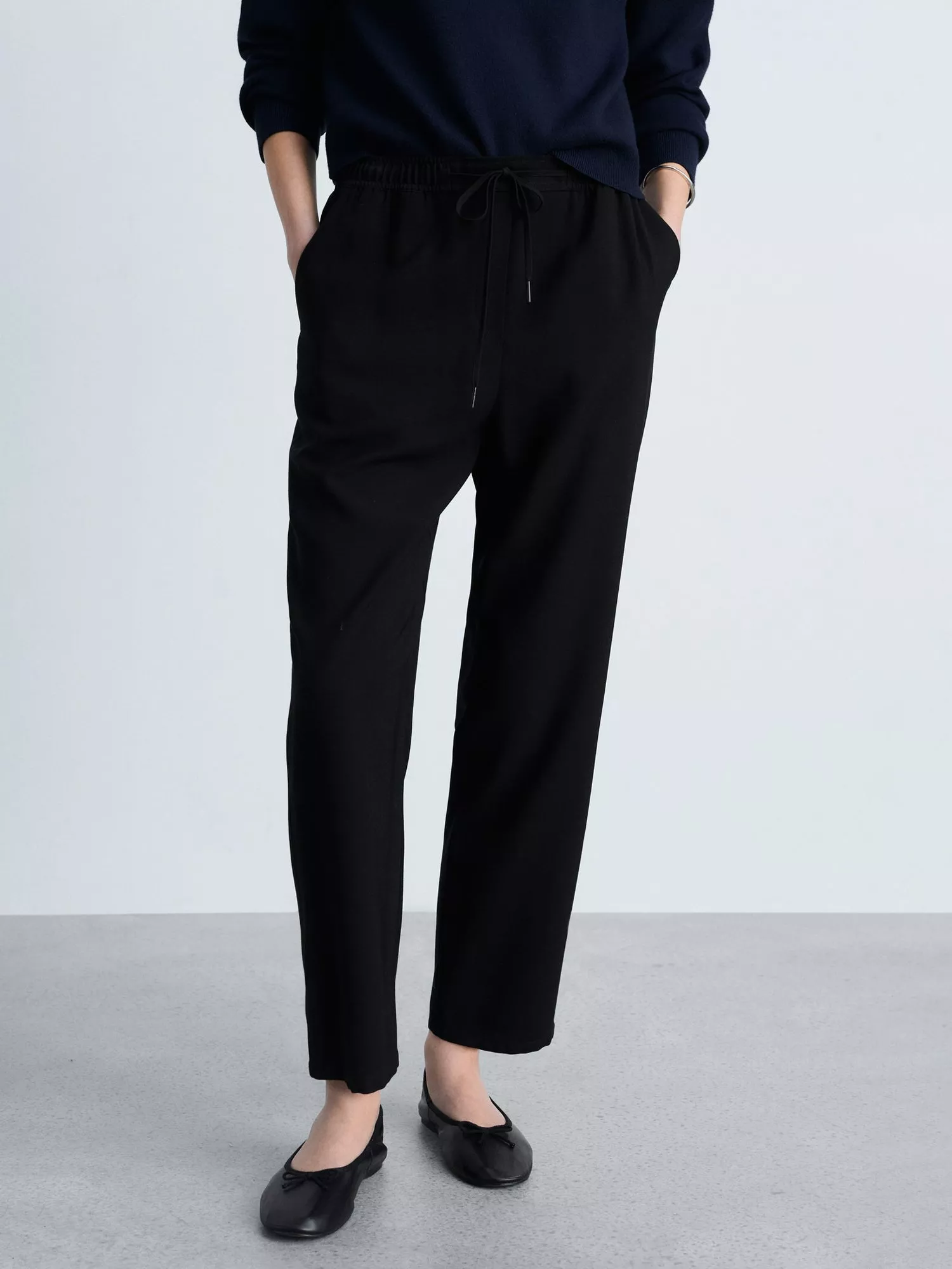 Topped with a drawstring waist for optimum comfort, this pair of trousers by Mango sit naturally on the hips and have a tapered shape to flatter your profile. Light and fluid in a blended viscose fabric, they are cropped at the ankle and may be plain in print, but are front-seat worthy.