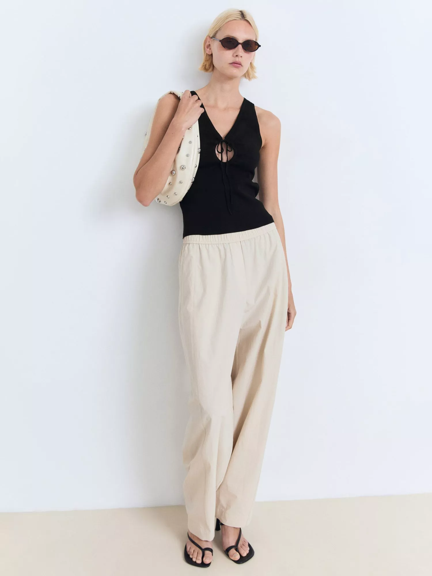 This lightweight vest offers everyday ease with a V-neck cut and sleeveless silhouette. With a keyhole tie front, it's perfect for pairing with your favourite trousers or skirt, adapting to your plans and keeping you comfortable.