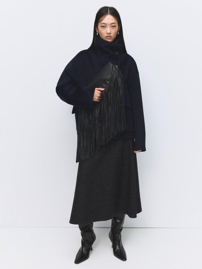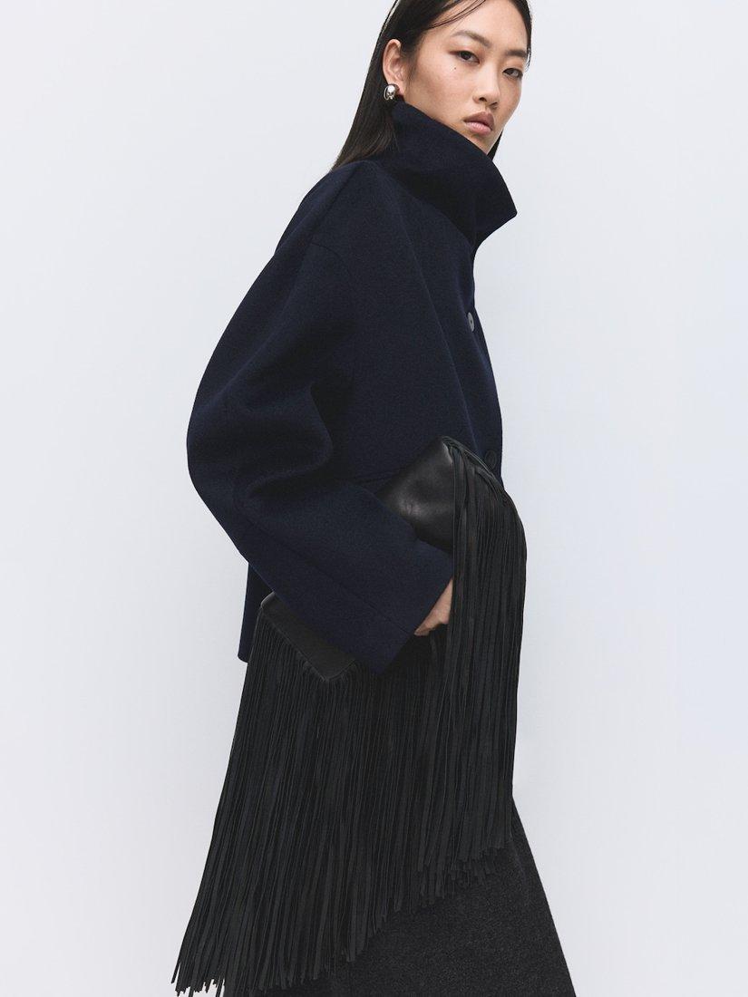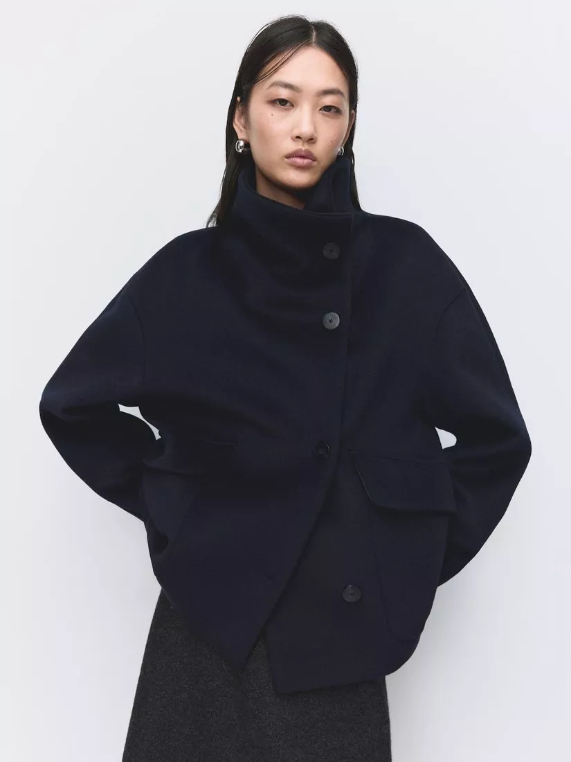 A cropped wool blend peacoat by Mango. The funnel neck and full lining lock in comfort while the sharp cut keeps you looking smart. Finished with bold buttons, it offers warm, modern structure for city days and evening occasions.
