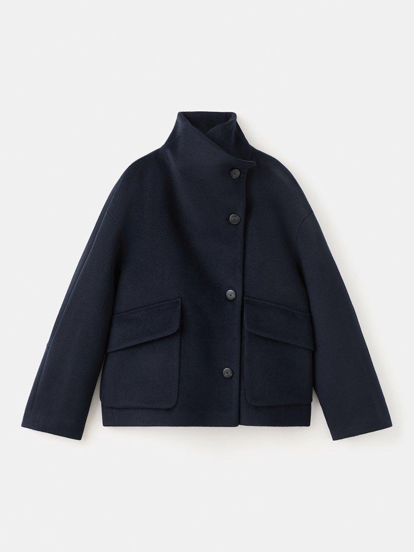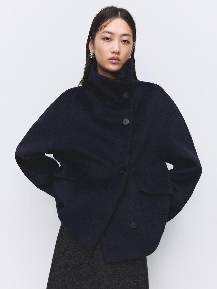 MangoFunnel Neck Cropped Wool Blend Coat, Navy