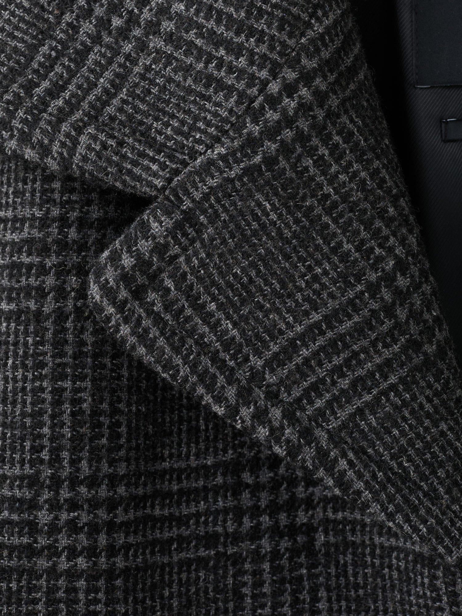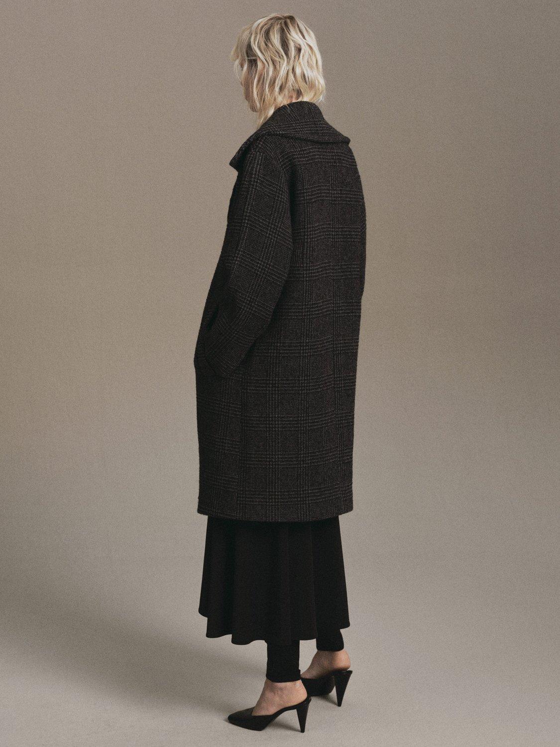 Detailed with a collar and offset by a splash of checks, it is made using a rich wool blend for a warming fit.