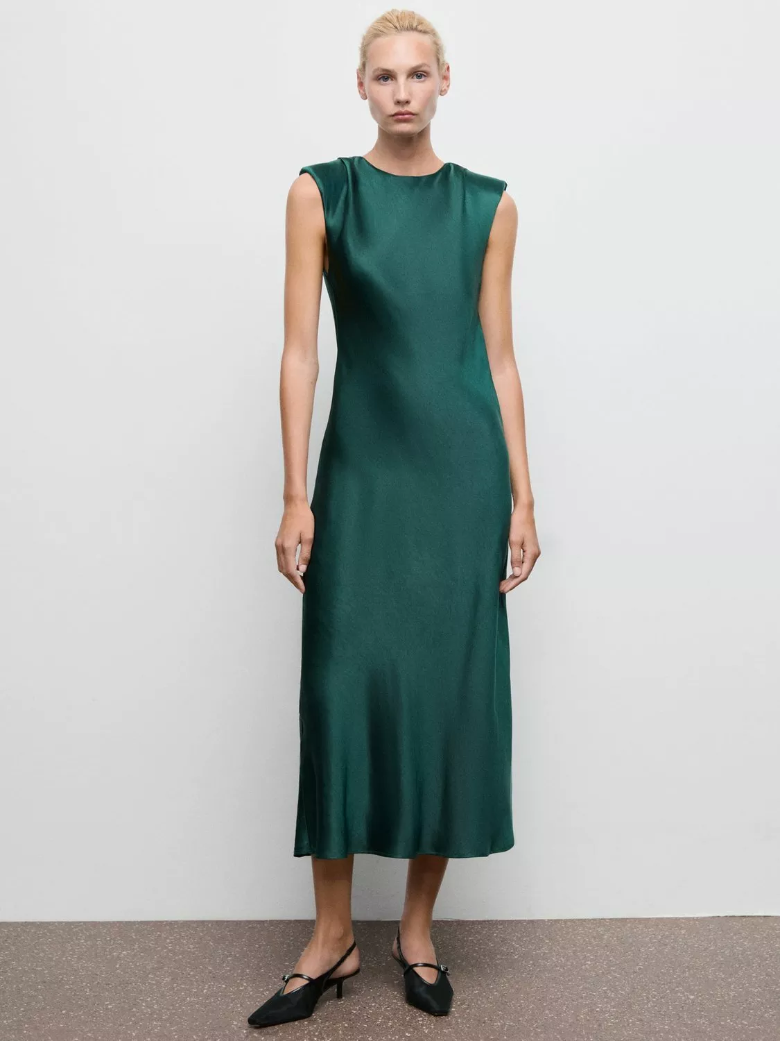 Keep things close in a bodycon design. This sleeveless midi dress from Mango features a round neckline whilst the plain colour means it goes with all your accessories.