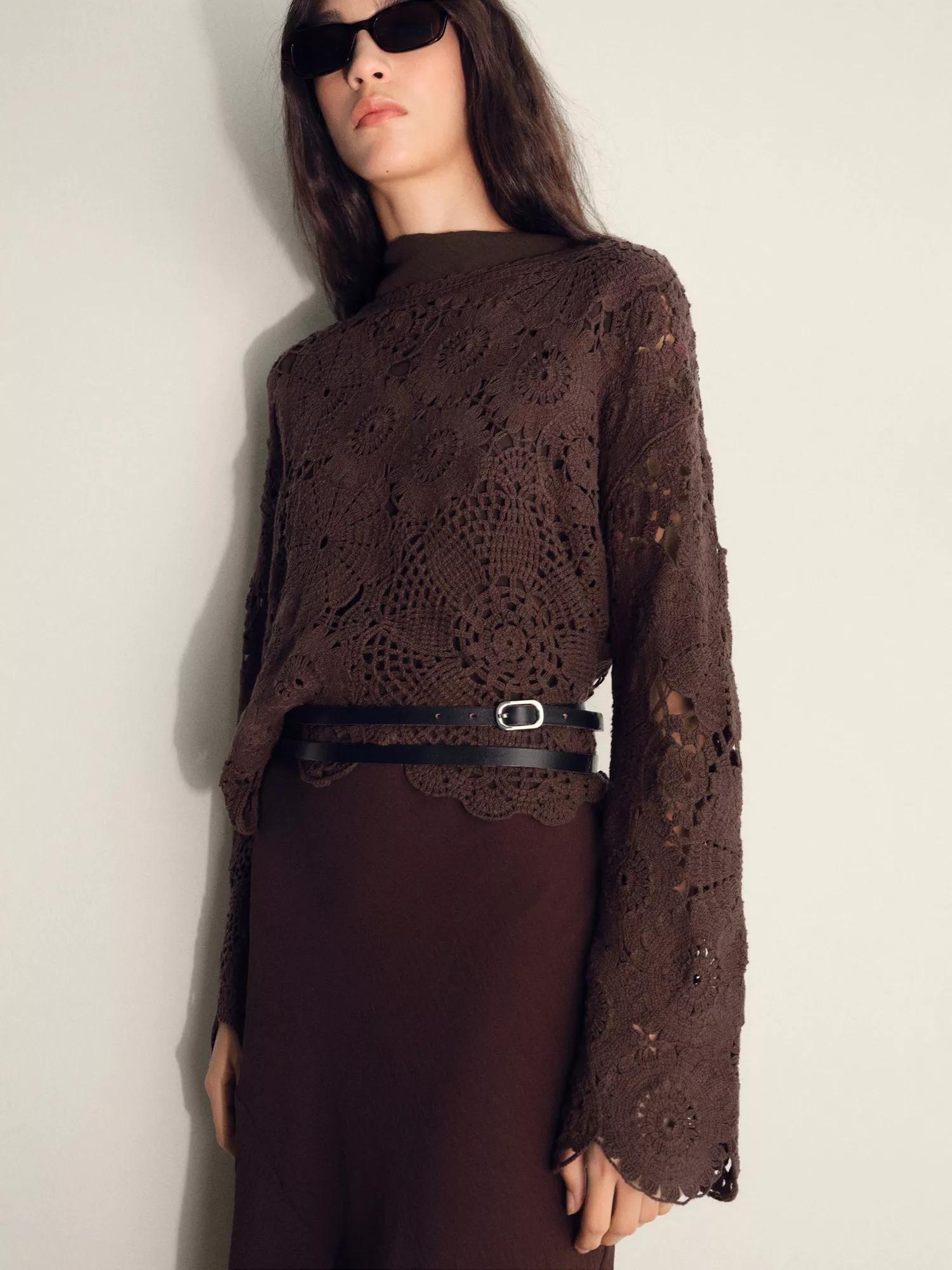 This cotton blend crochet top keeps you comfortable with medium-weight warmth. Embroidered floral details and a boat neck add a clever twist, making it easy to mix into your wardrobe for work or weekends.