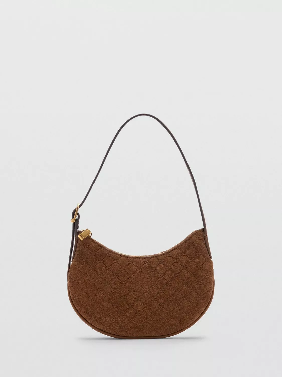 A classic style that needs no bells and whistles, complete your outfit with smart simplicity with this shoulder bag from Mango. Rendered from soft-touch suede with a monogram design, it keeps your items secure with its zip fastening.