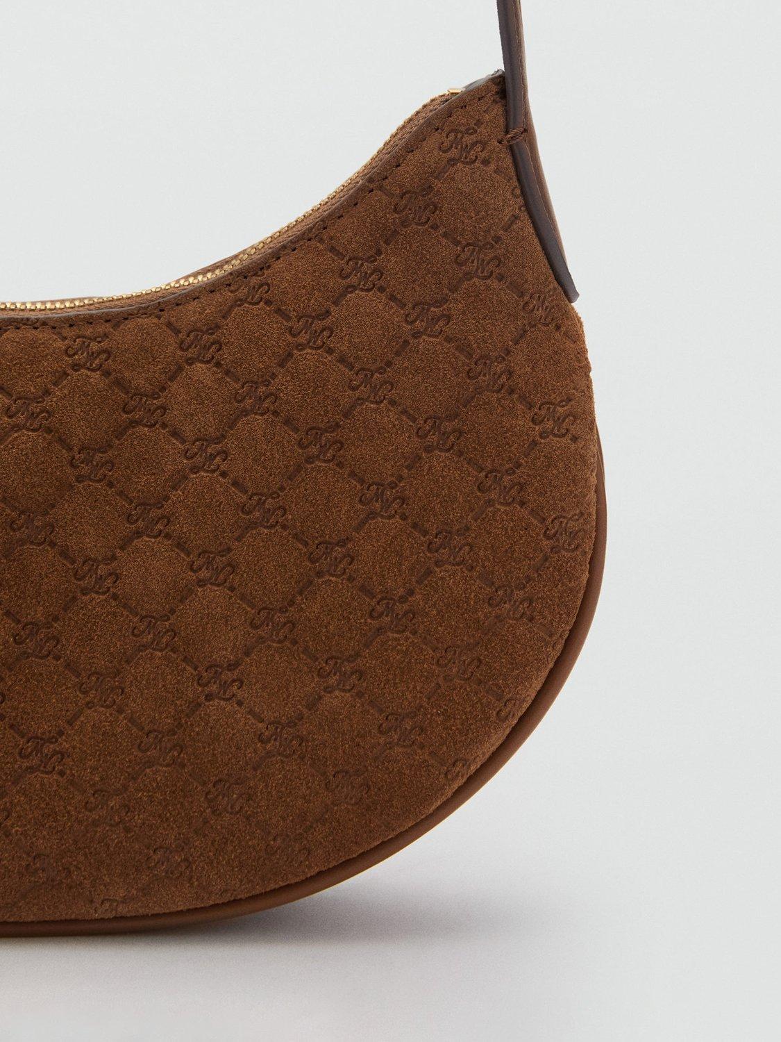 MangoGarland Suede Monogram Shoulder Bag, Medium Brown