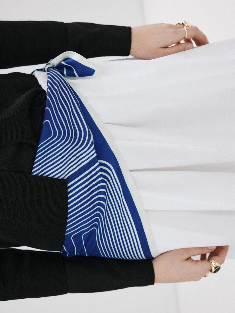This satin scarf brings a spark to your look with a clever geometric pattern.