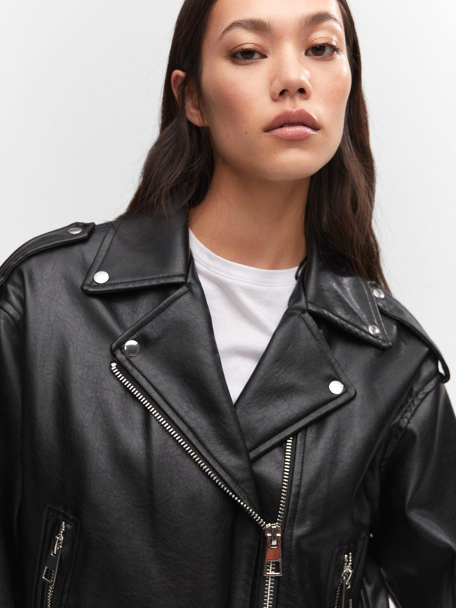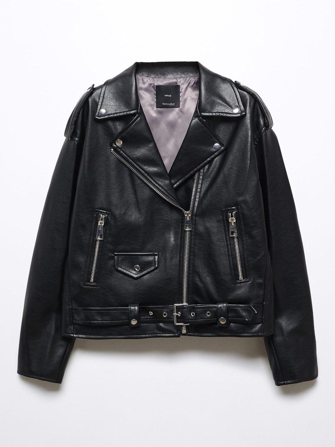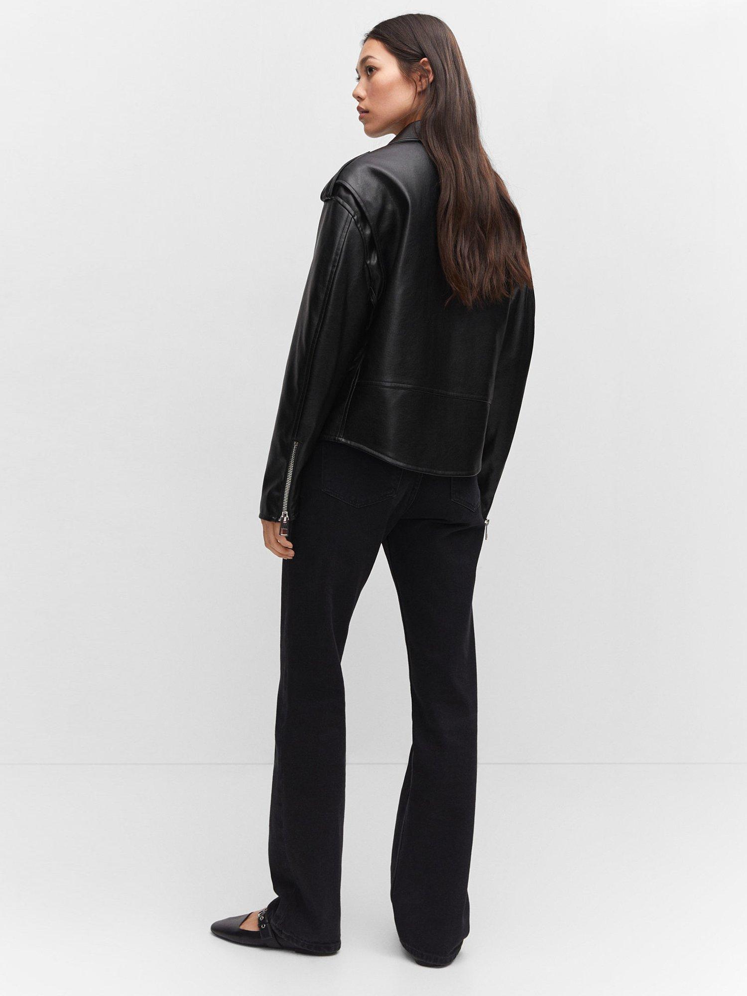 MangoGift Faux Leather Biker Jacket, Black