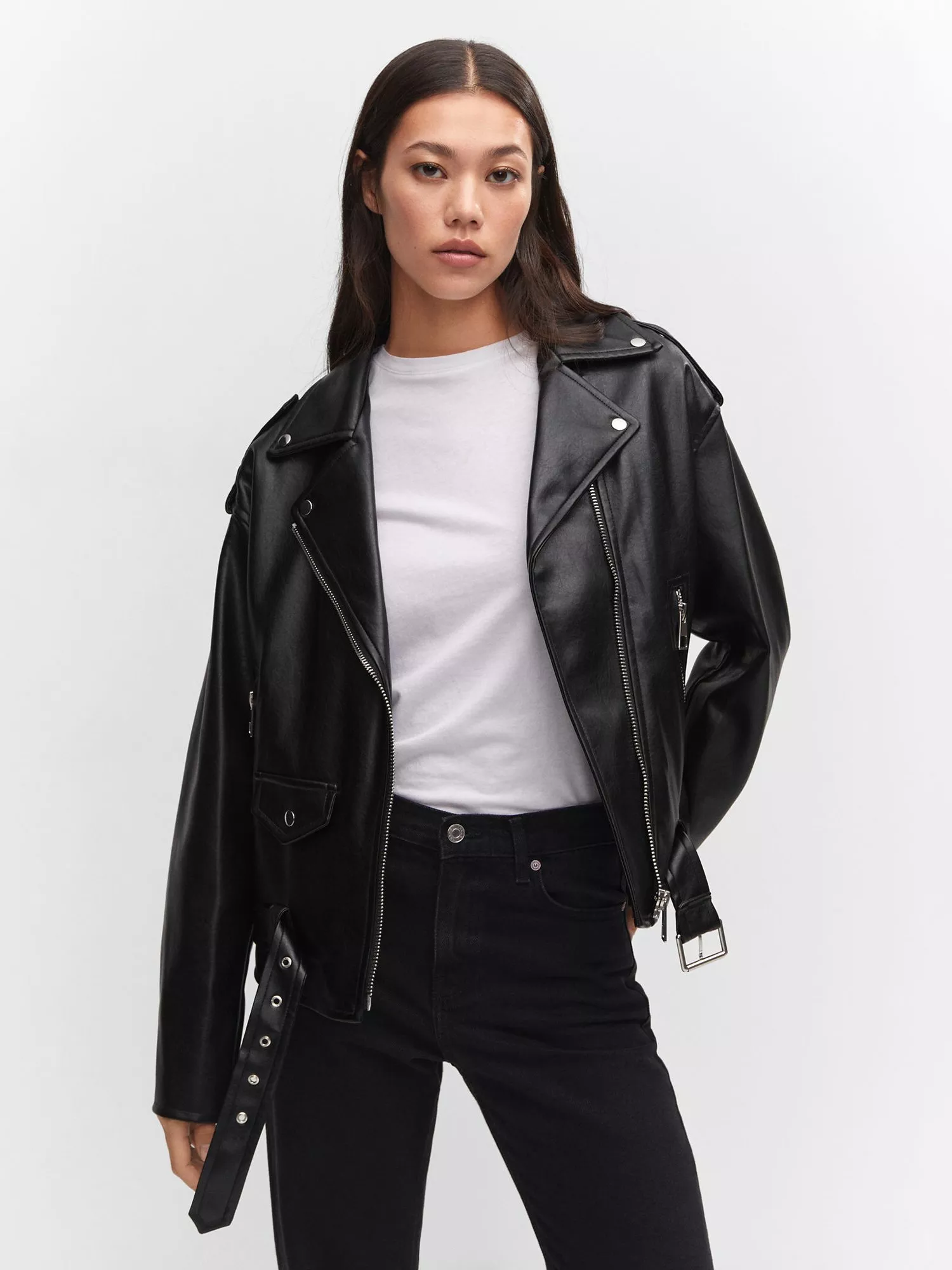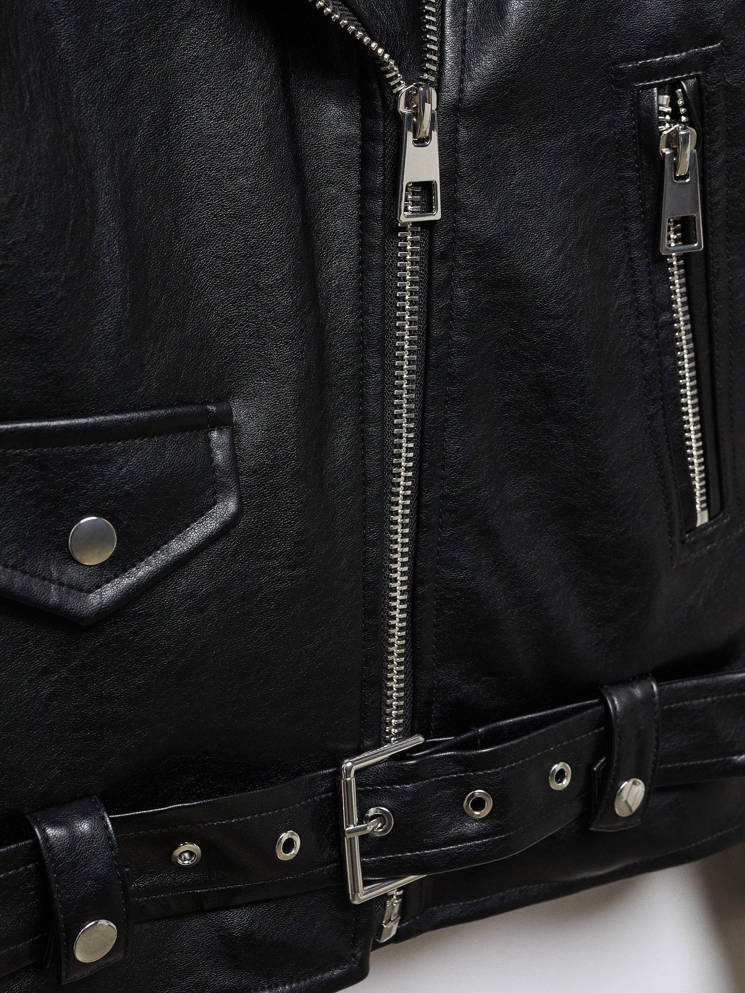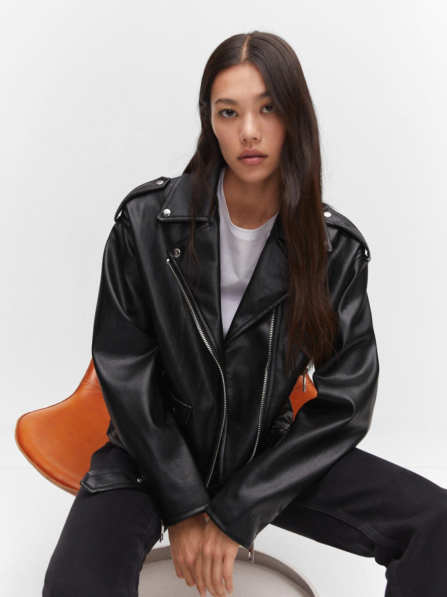 MangoGift Faux Leather Biker Jacket, Black