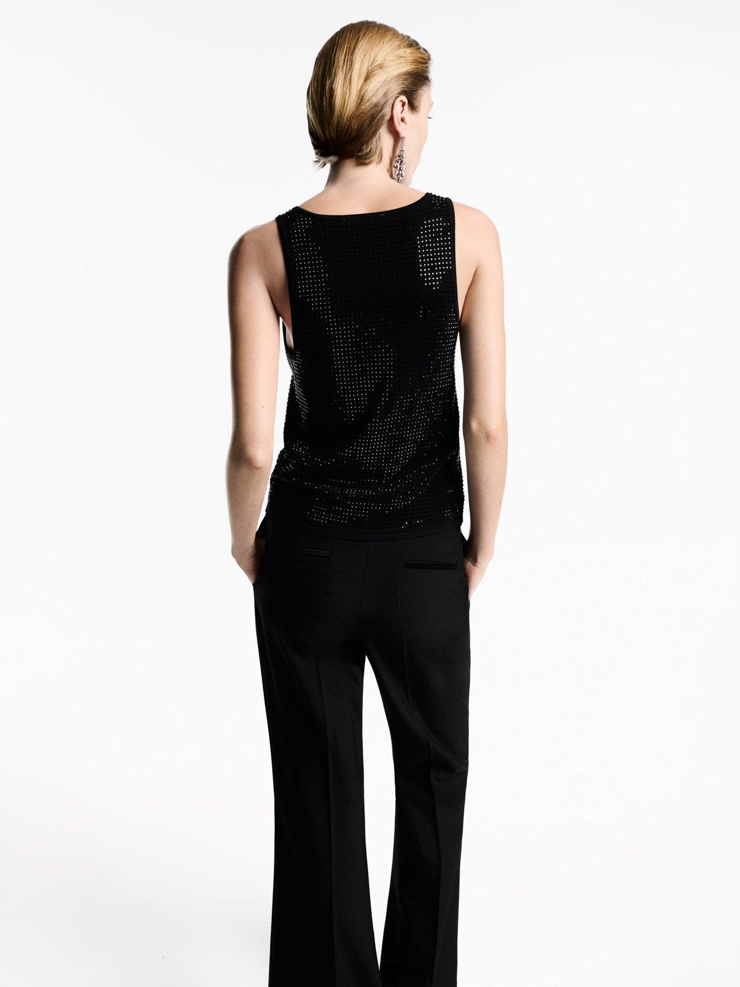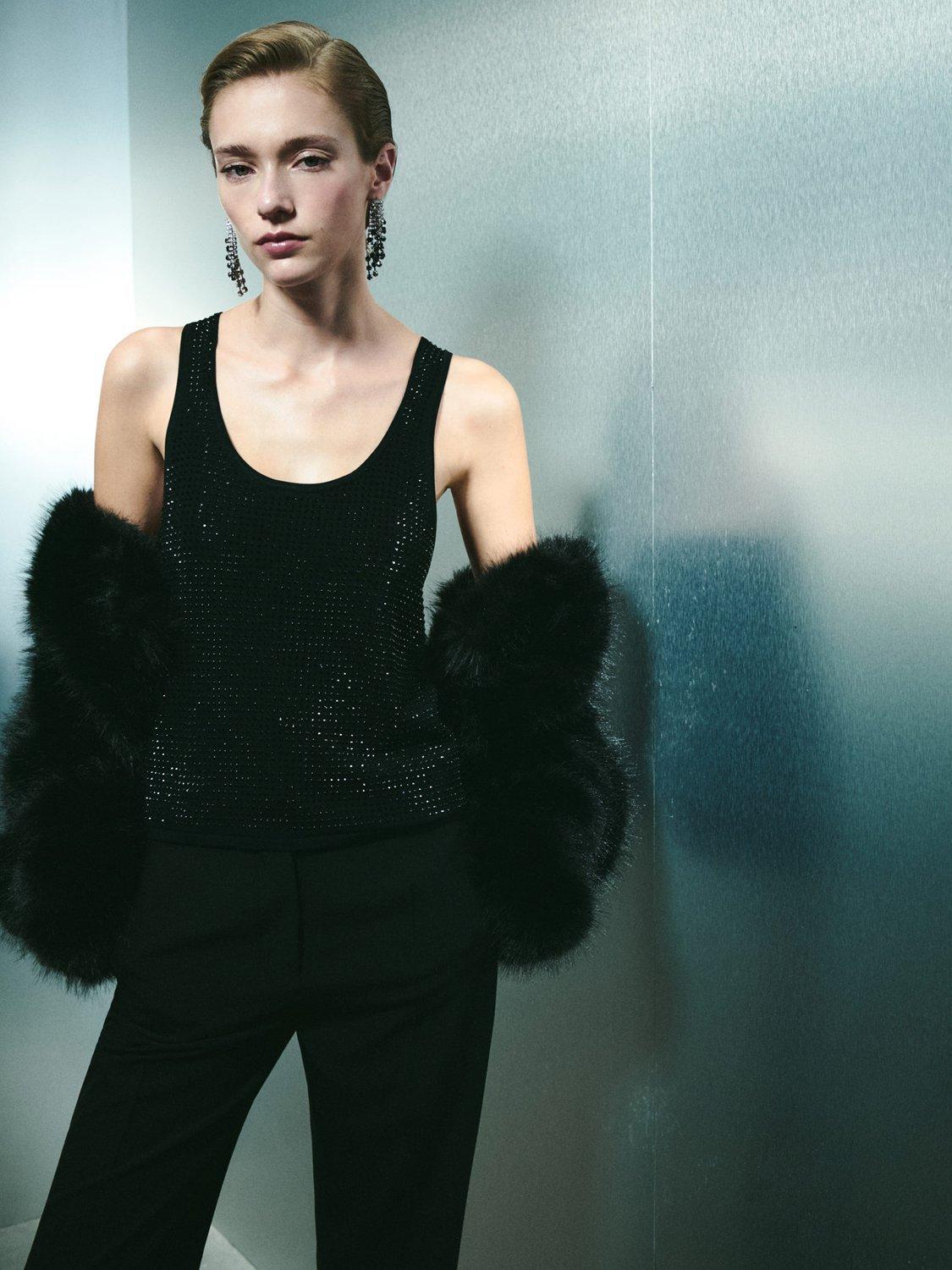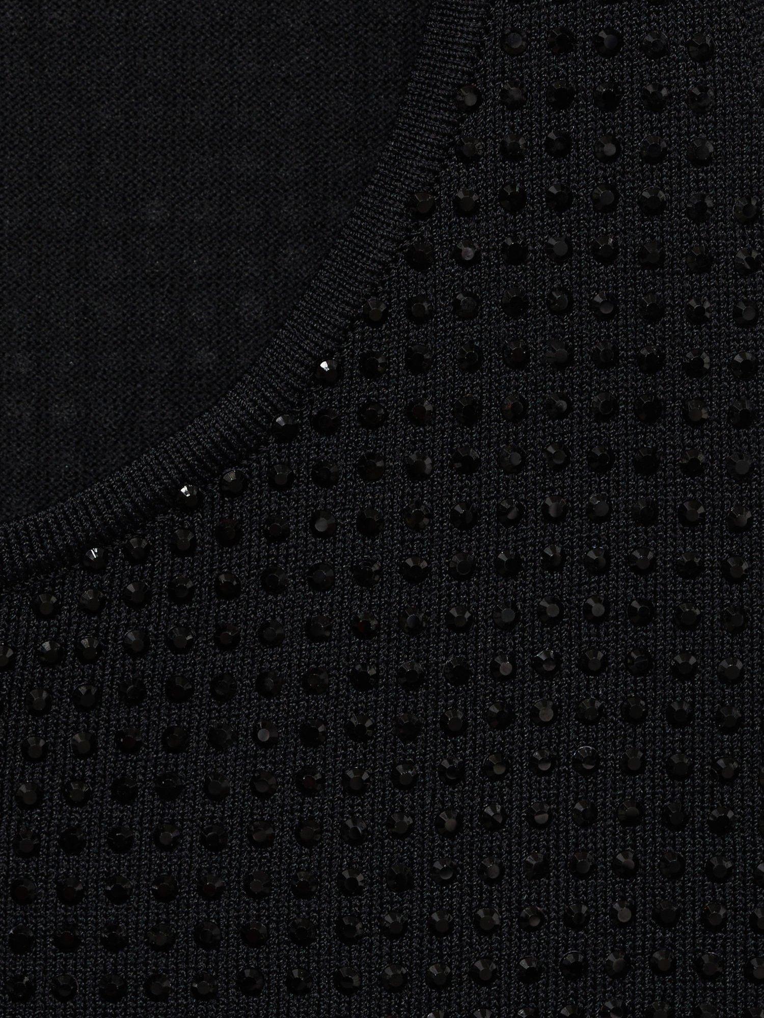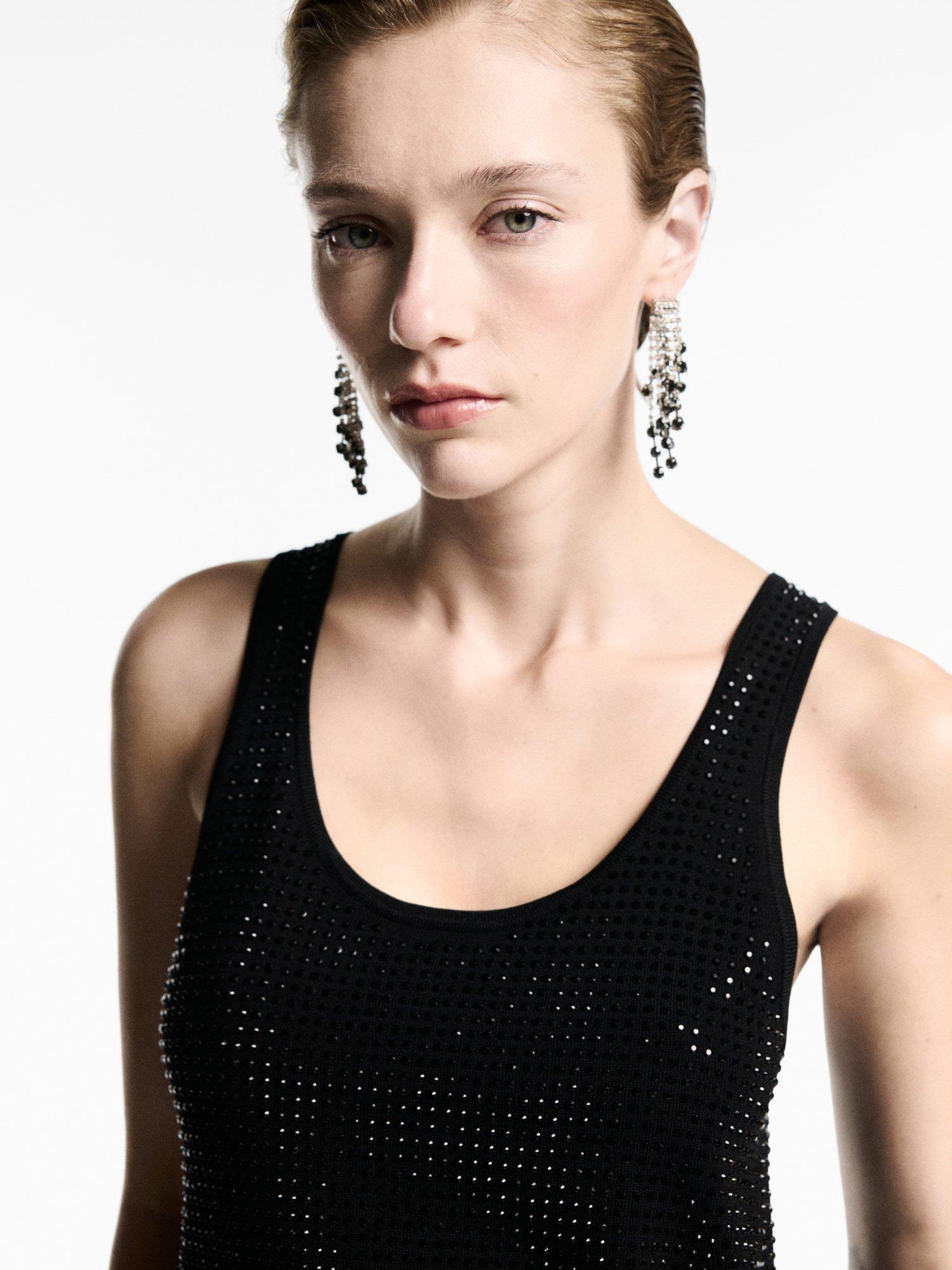 Embellished with tonal rhinestones for eye-catching sparkle, this vest from Mango is framed with a scooped neck and a high back. The perfect thing for the party season.