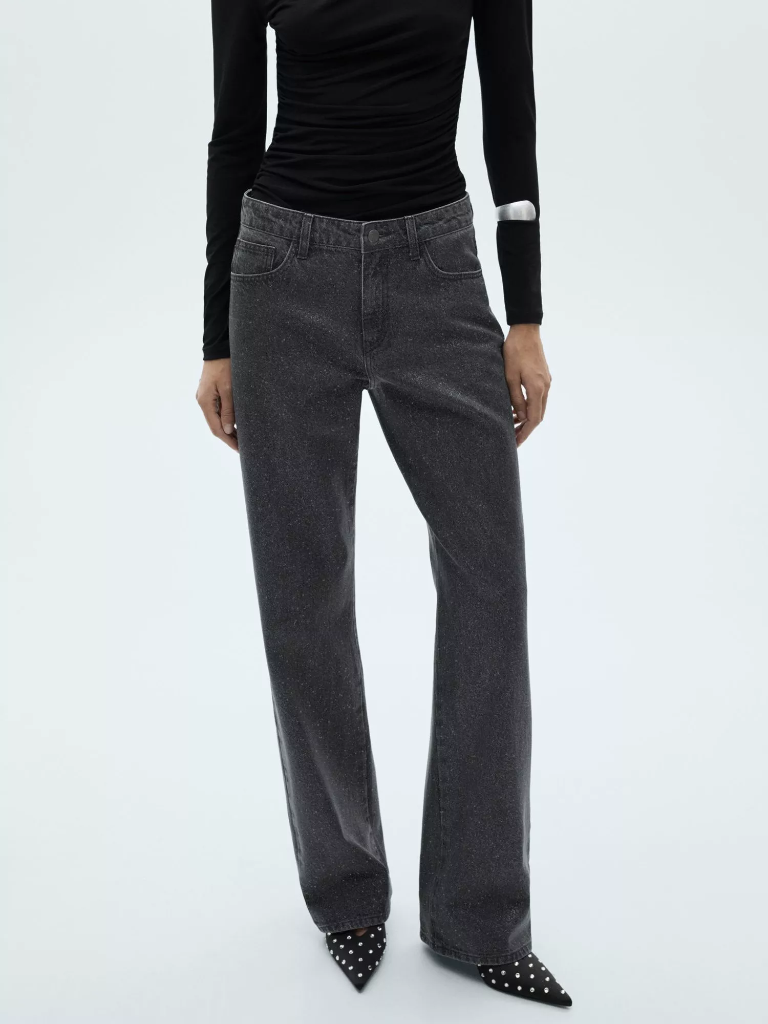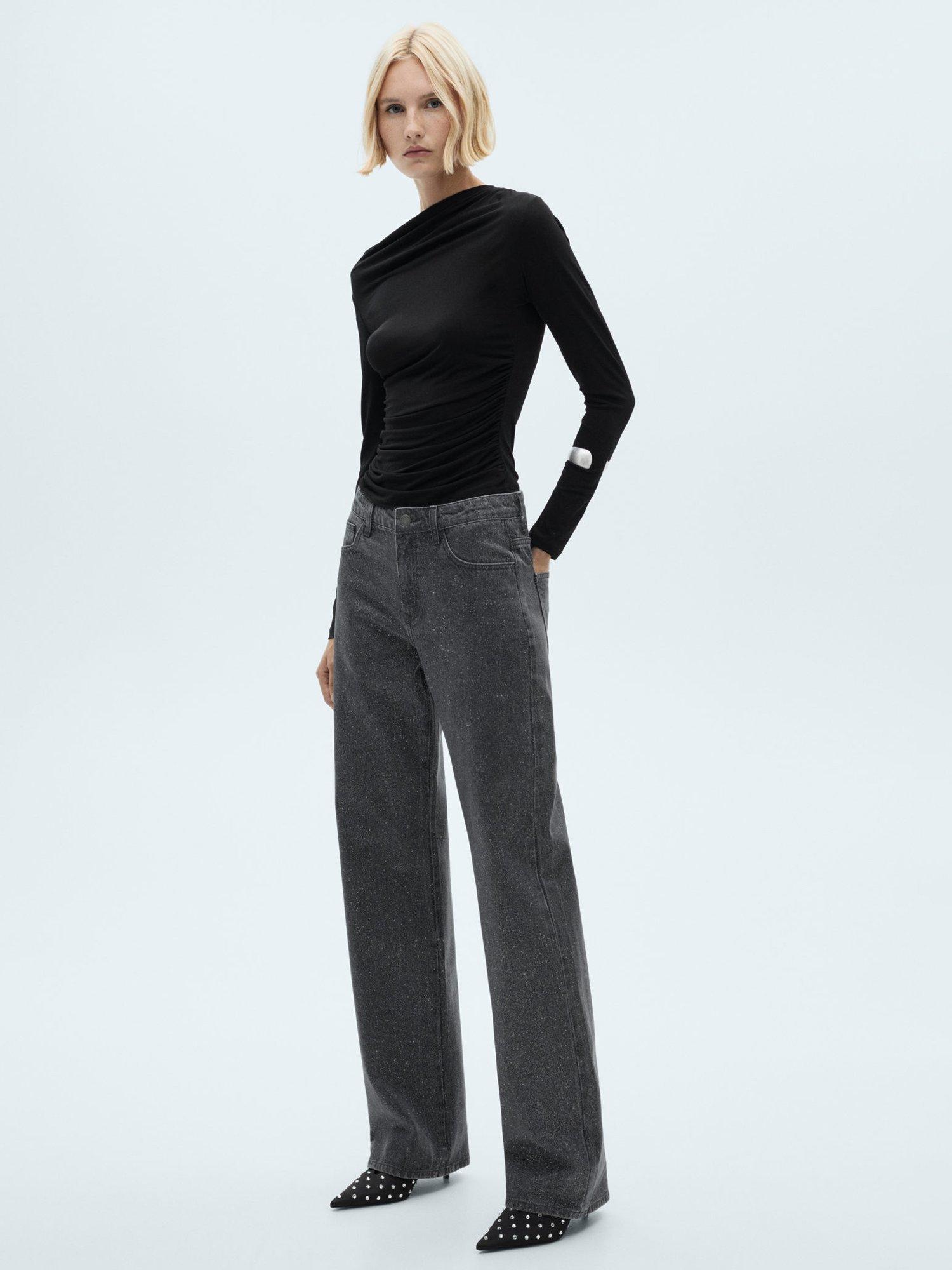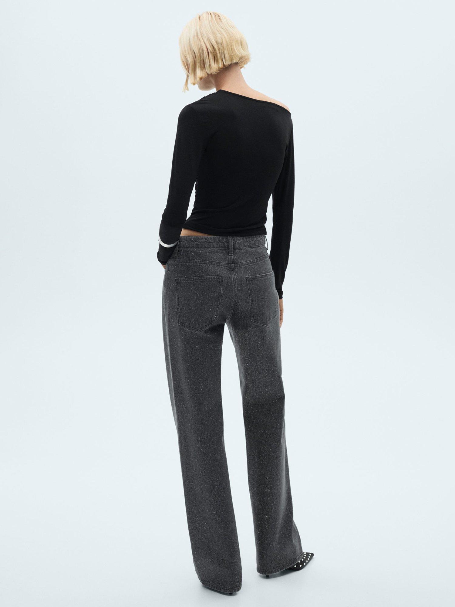 Carved out to a stunning silhouette, these mid rise glitter embellished jeans by Mango are made with comfort in mind thanks to their cotton composition and are longer in length for a flattering silhouette.