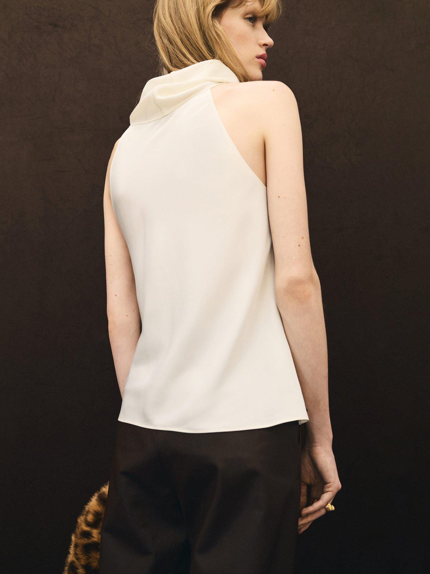 A blouse by Mango. Featuring a cowl neck, it comes in a mix-and-match ready plain colour. Effortless style for daily dressing.