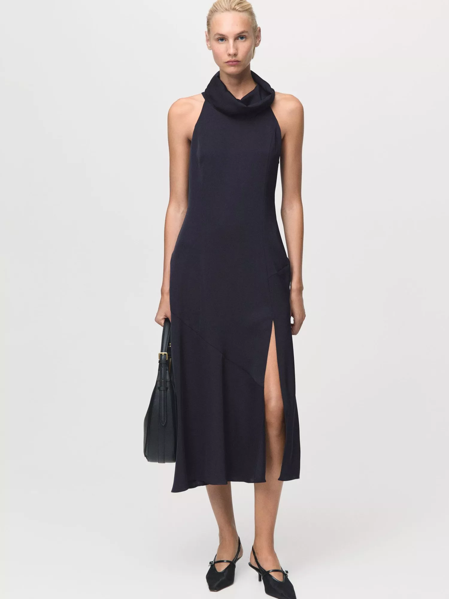 Add drama to your silhouette with a flared cut. This sleeveless midi dress by Mango features a cowl neck and a plain colour designed to go with anything.