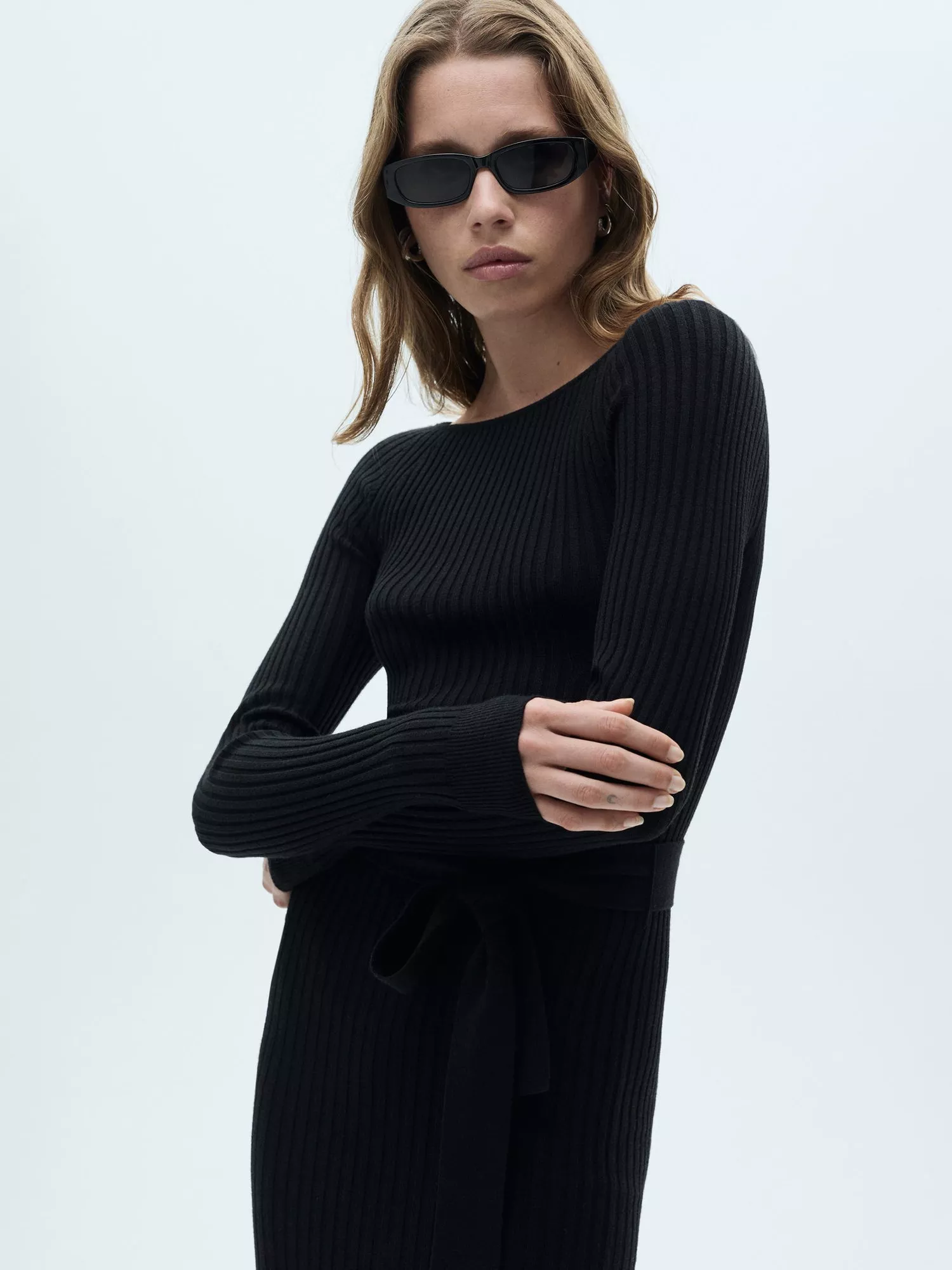In a simple but effective bodycon fit, this mid-length dress from Mango is blended with viscose for a weightless feel. With a flattering boat neckline and long sleeves, it is minimally detailed for endless wearability.