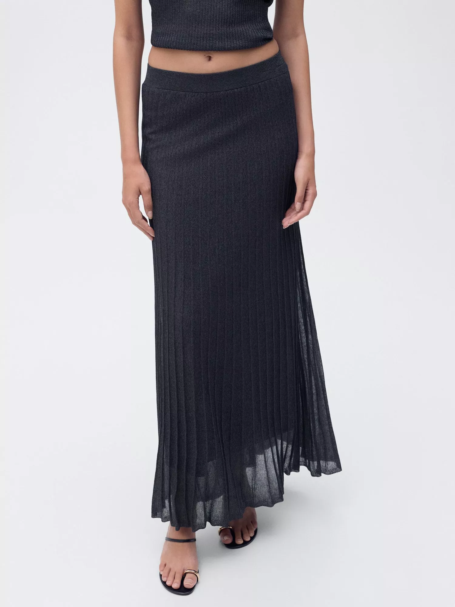 A maxi-length skirt from Mango cut with pleats. Made from a glitter metallic viscose blend, it fastens smoothly with a zip.