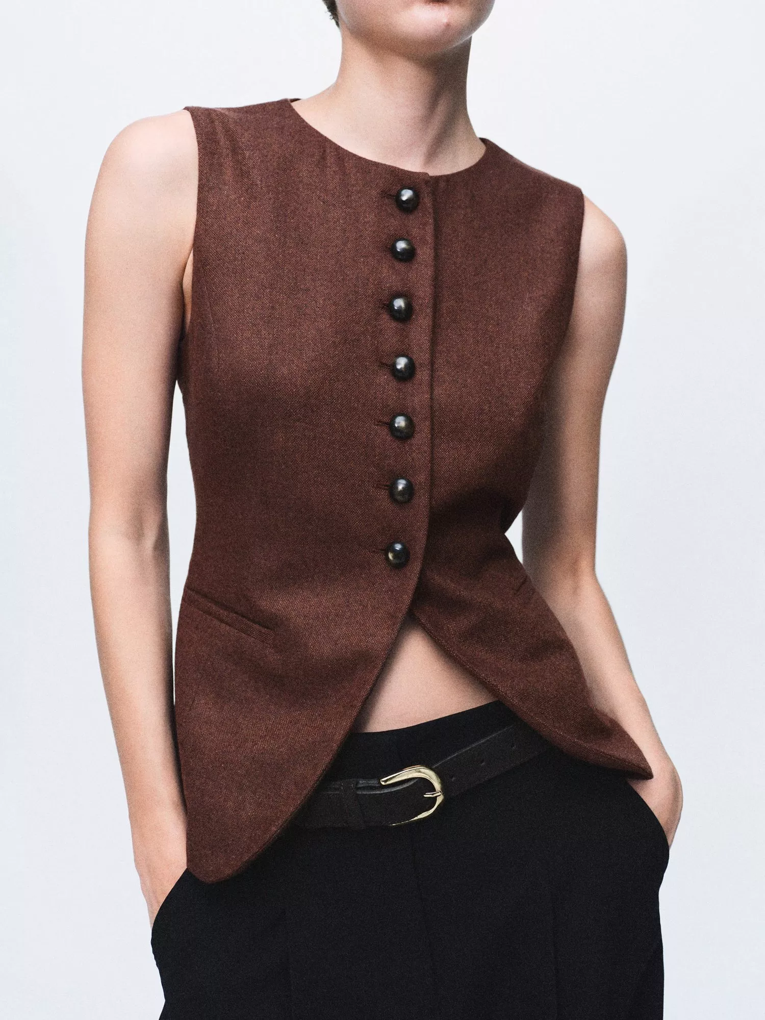 A round-neck waistcoat by Mango. Its smart wool blend keeps you comfortable at work or out and about, while thoughtful tailoring ensures you look sharp and feel at ease wherever you go.