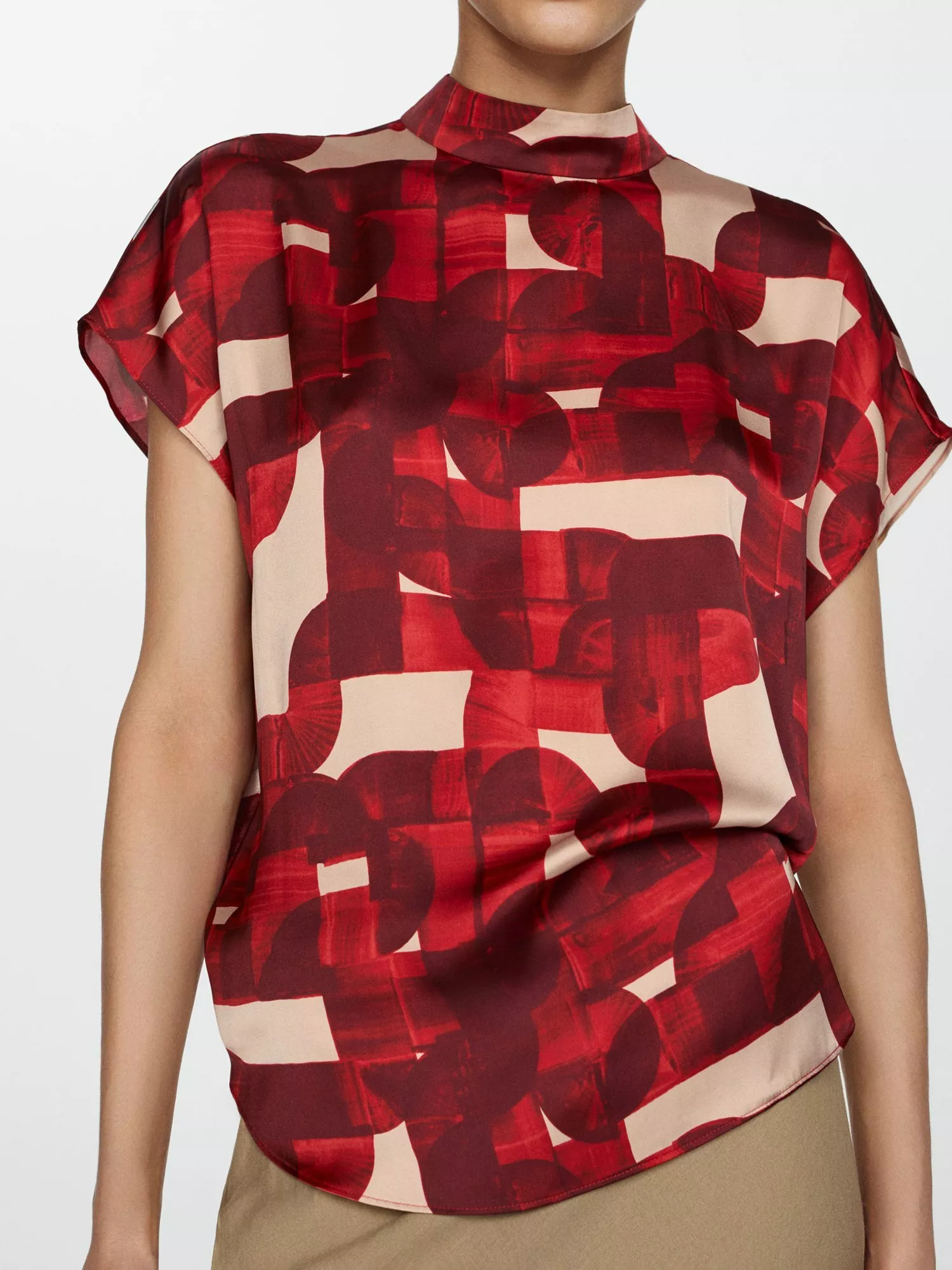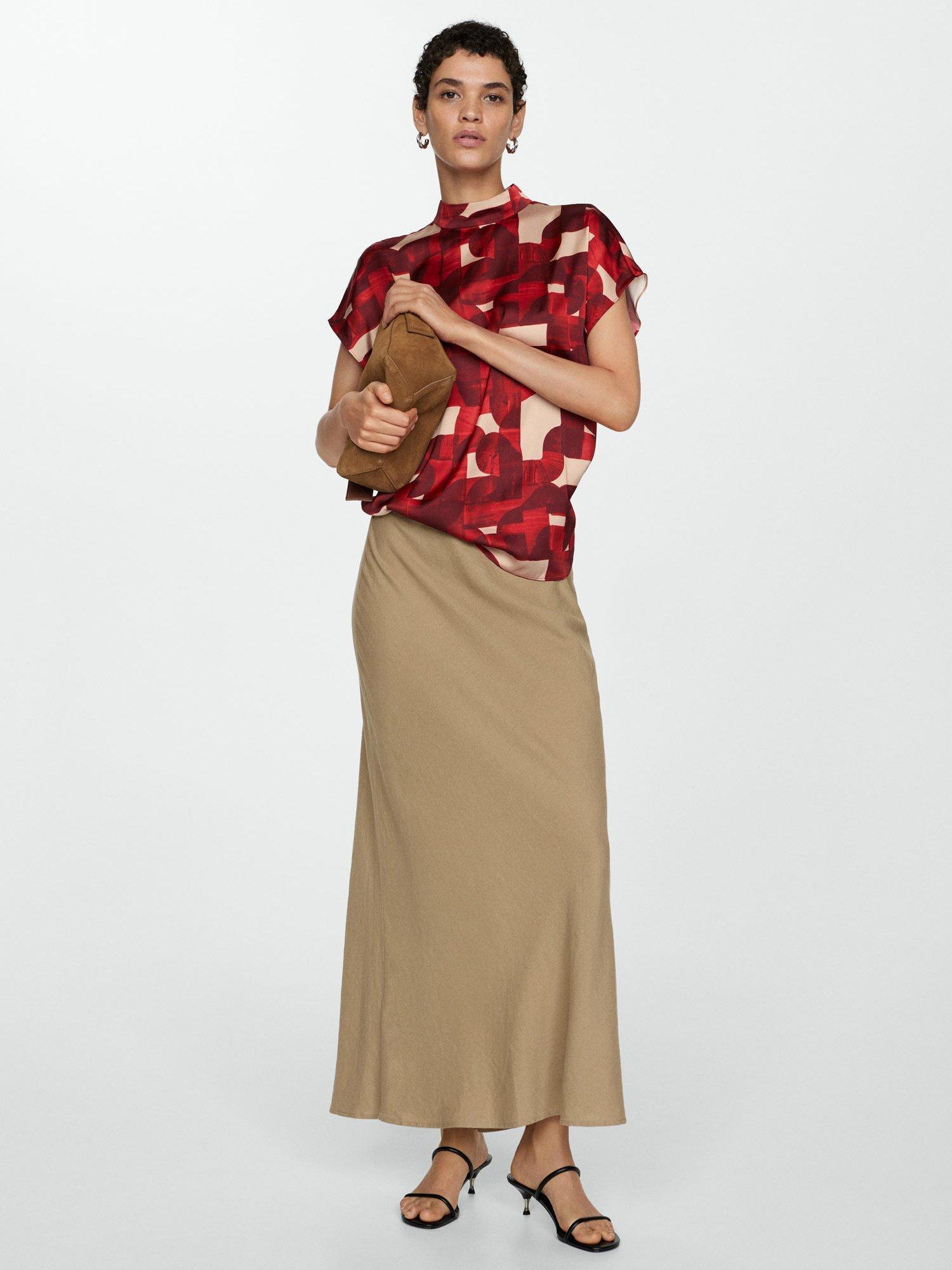 Bringing a neat addition to your wardrobe, this blouse from Mango adds impact with its eye-catching abstract pattern. Accented with a high neckline and short sleeves, it is made from a light yet durable fabric and is an easy daytime option.