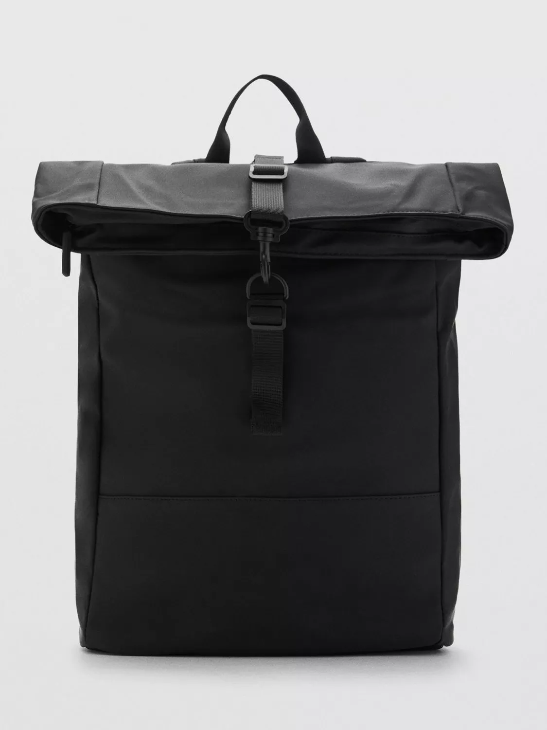 In a classic style that's quite literally, got your back, this backpack is designed by Mango. Created with adjustable double straps, it fastens with a zip and a carabiner clasp for extra security.