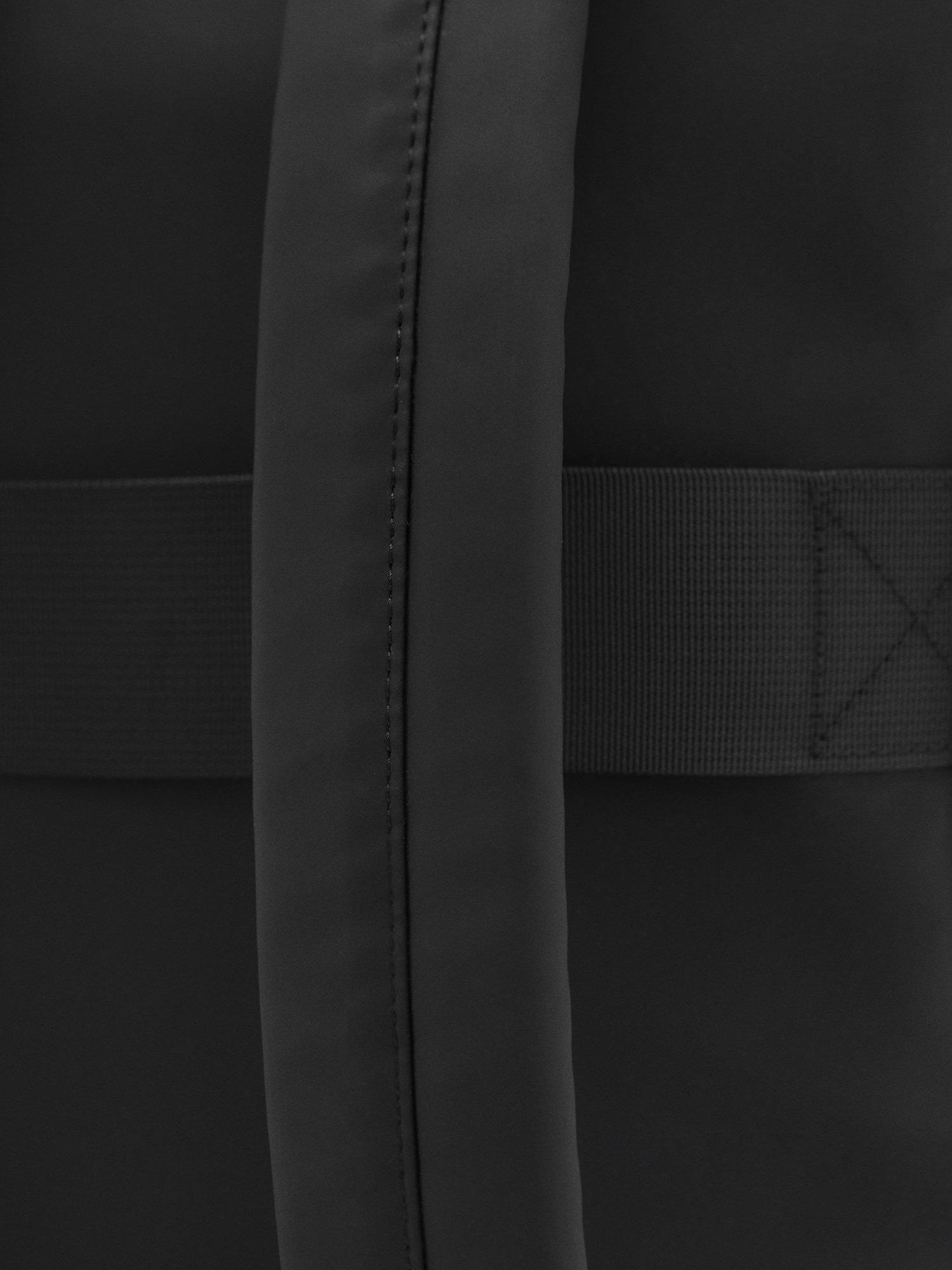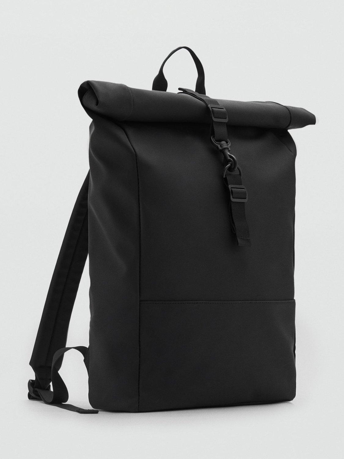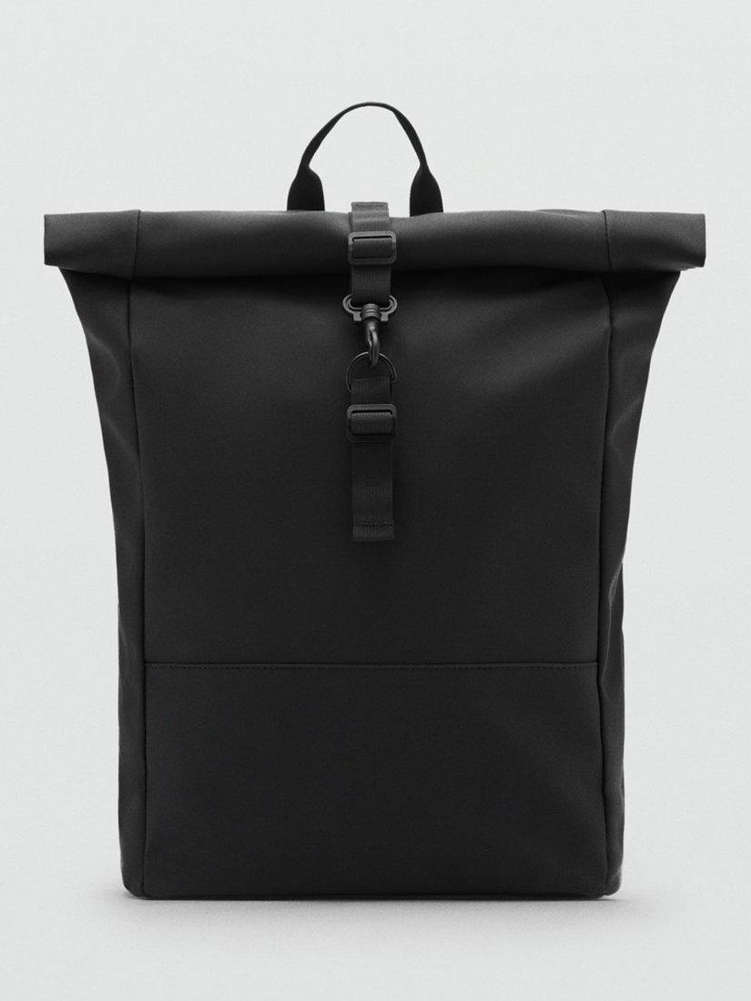 Made from gummed fabric, this backpack from Mango features two adjustable straps and an internal pocket for electronic devices up to 25cm wide. With a top handle for easy transport as a carry-on bag, this style has a flap closure with a carabiner clasp and an adjustable strap.