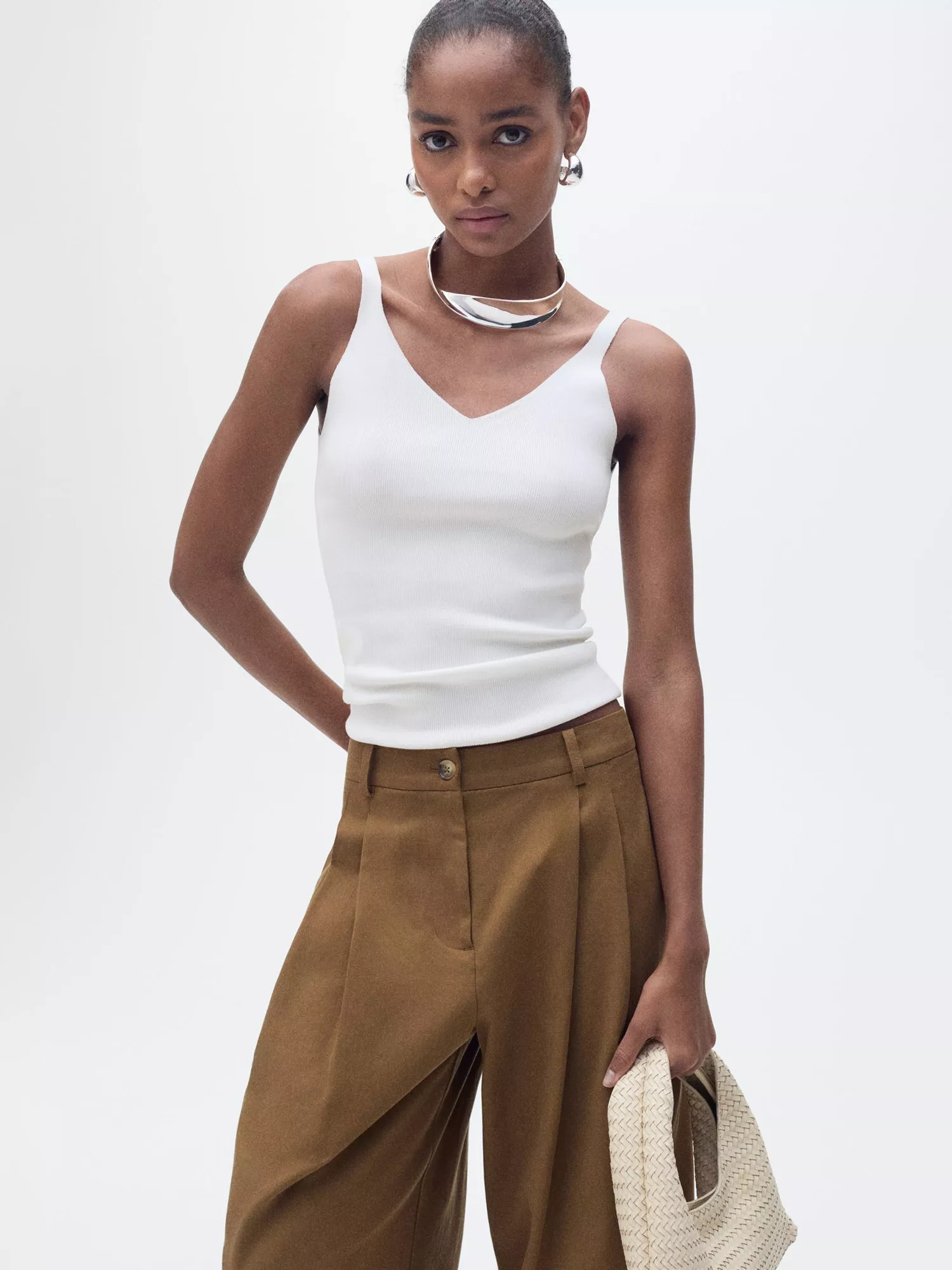 With a v-neck that's echoed on the back, this vest from Mango is knitted from a light yet robust blended fabric. A great base for your summer looks.