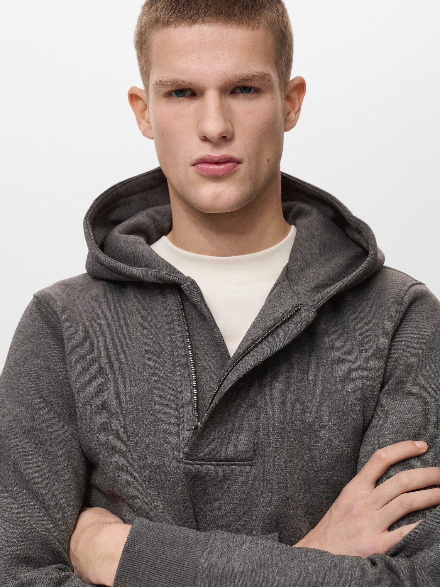 MangoHalf Zip Hooded Jumper, Medium Grey