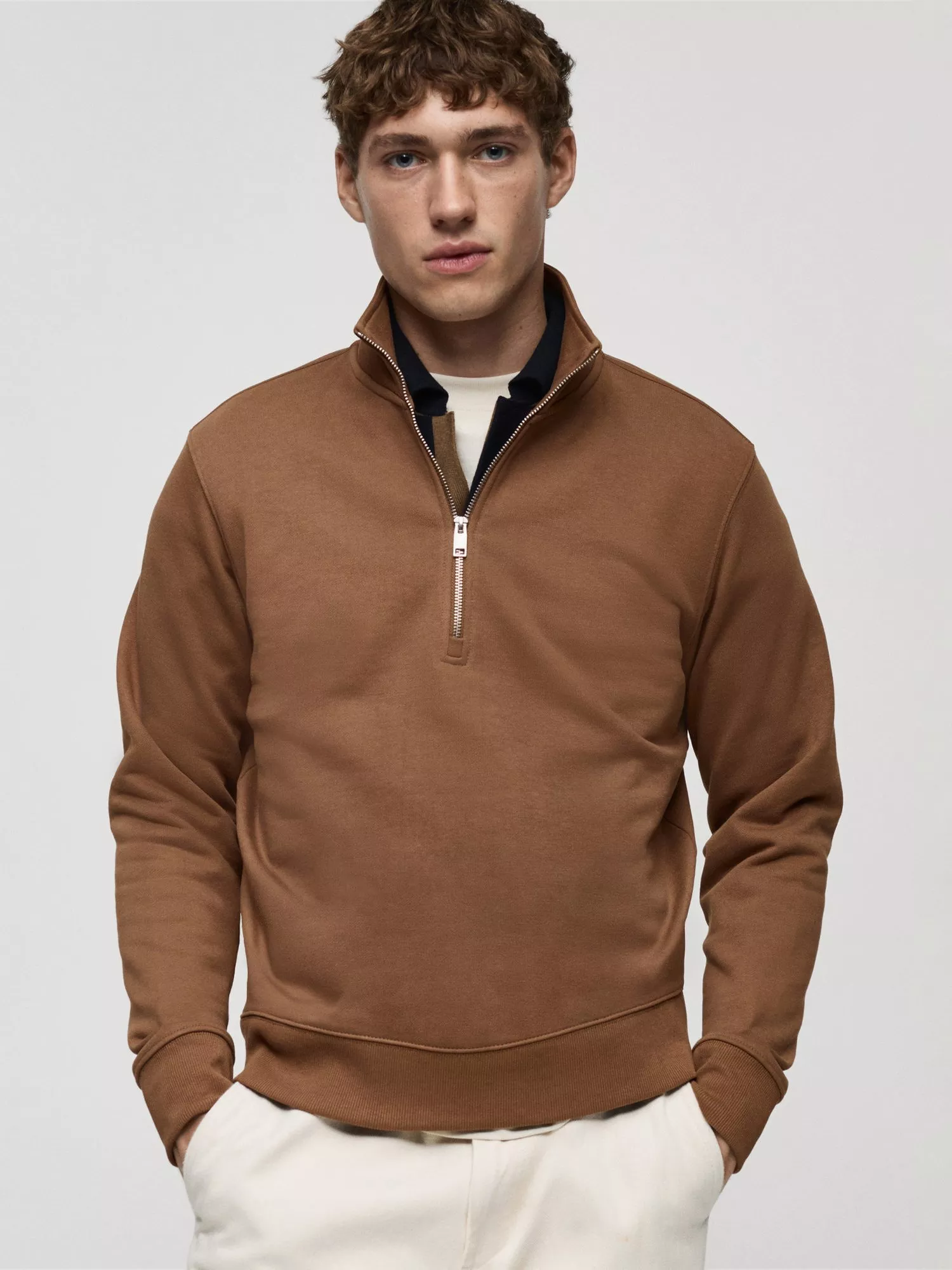 MangoHalf Zip Neck Sweatshirt, Medium Brown