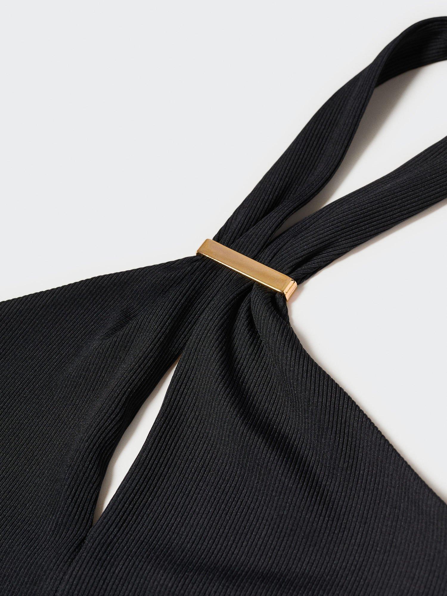 Topped with a halterneck and a sleeveless design, it is made with durable fabric for longevity of wear and is perfect for after-dark dressing.