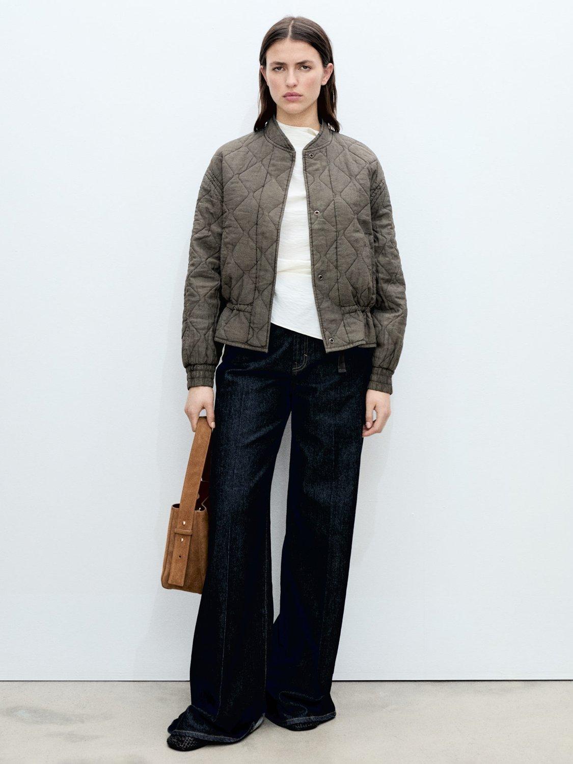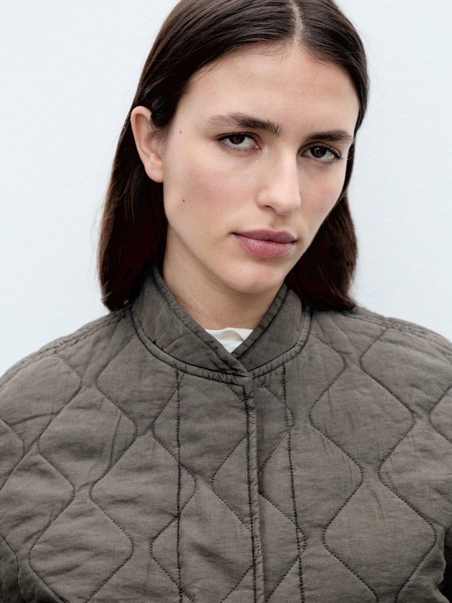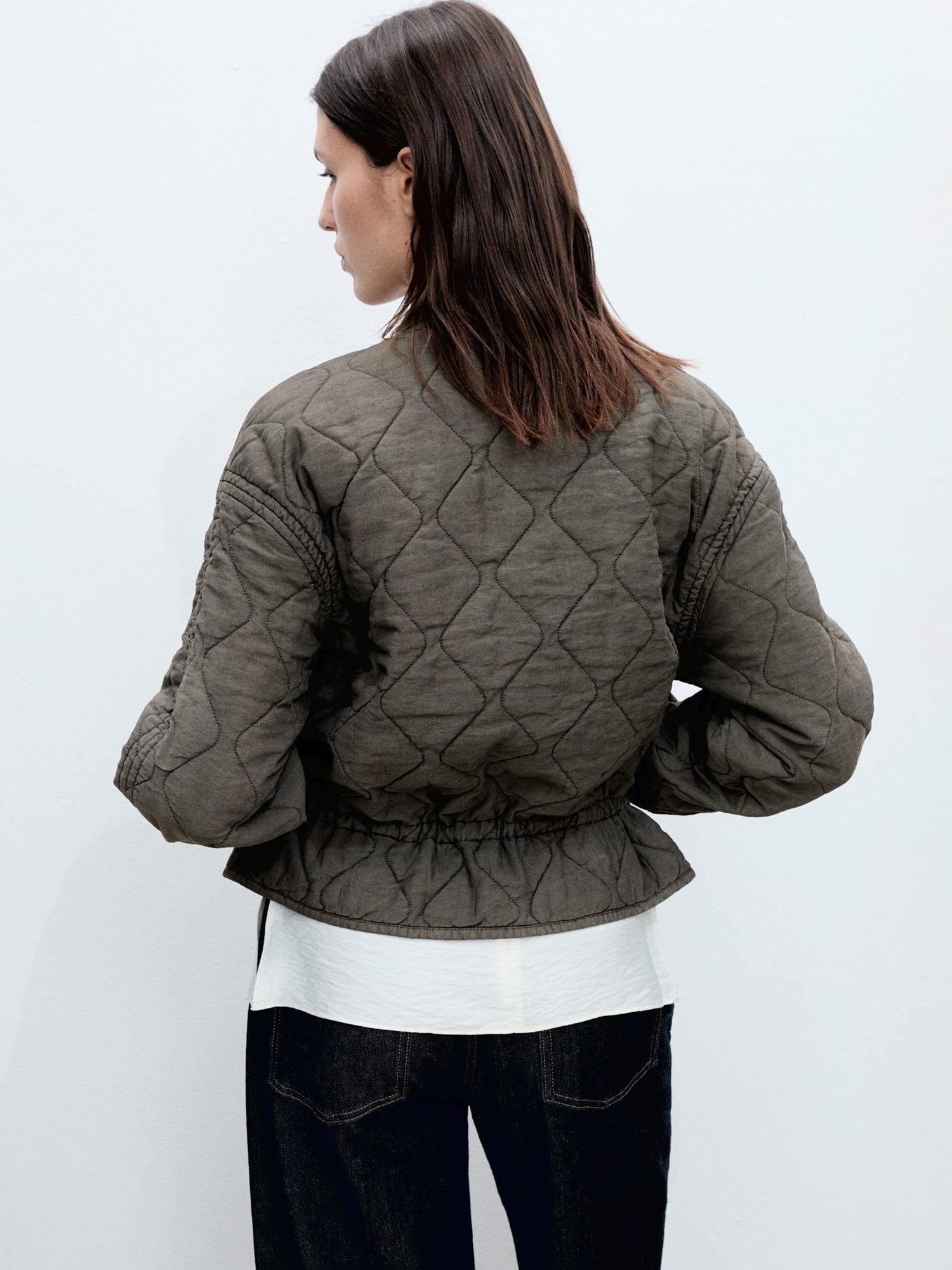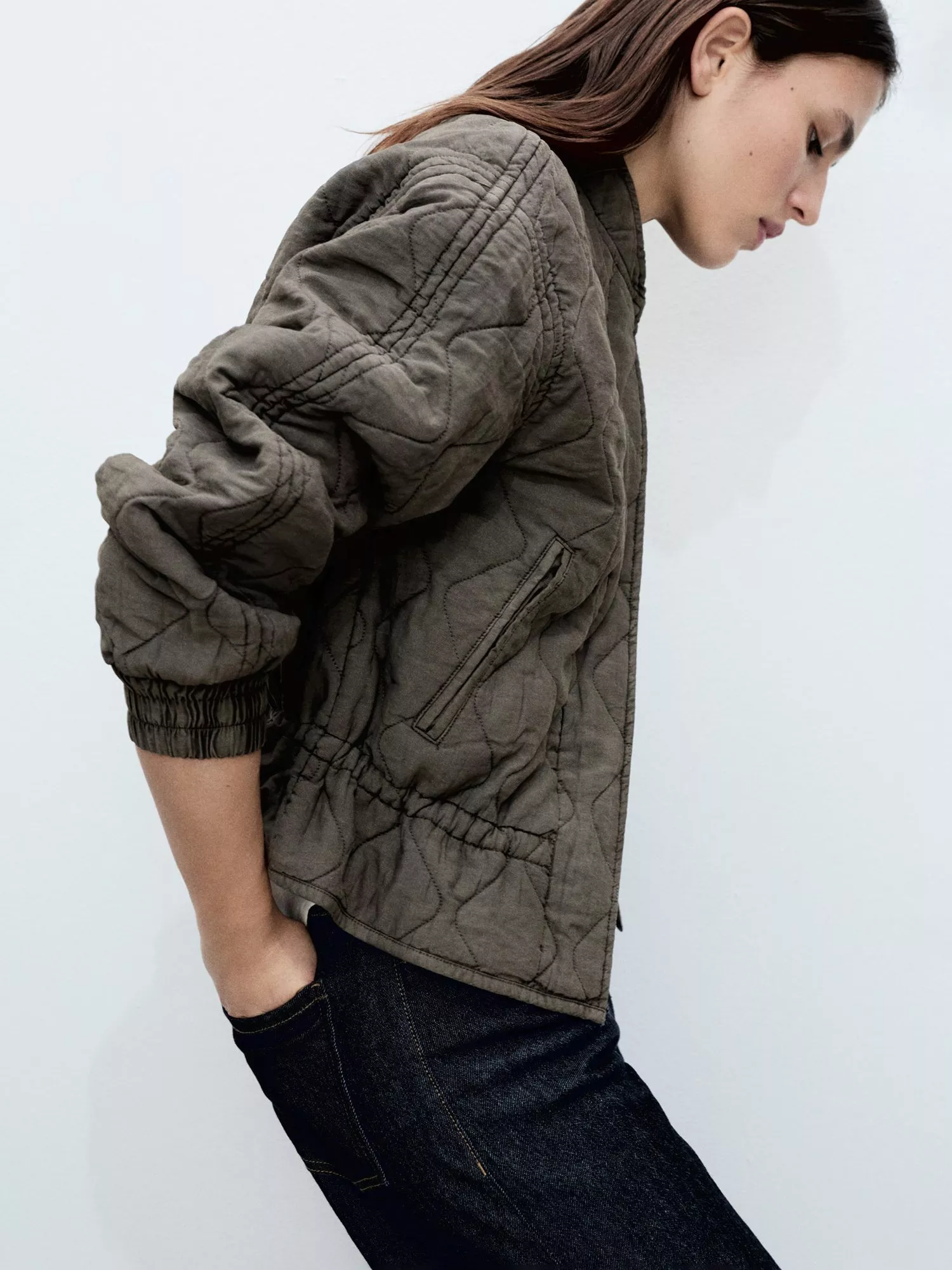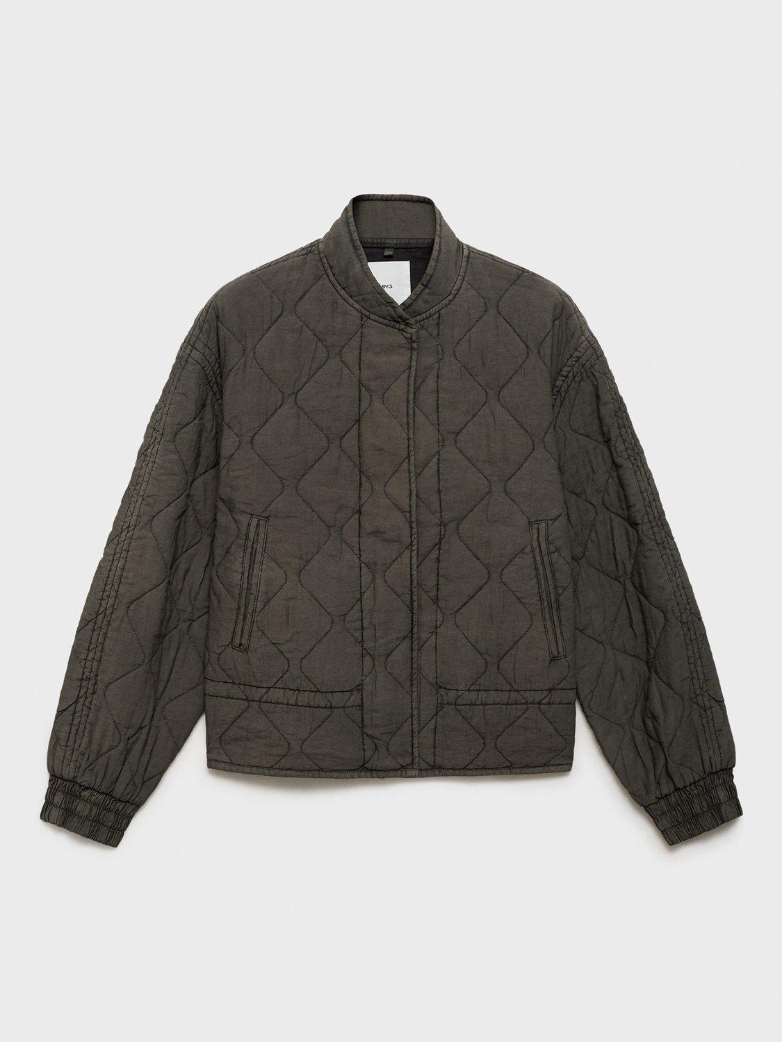 In a distinct bomber style, this quilted jacket by Mango falls to a regular length. With a high neckline, it is made from a smooth blended fabric for lightweight wear.