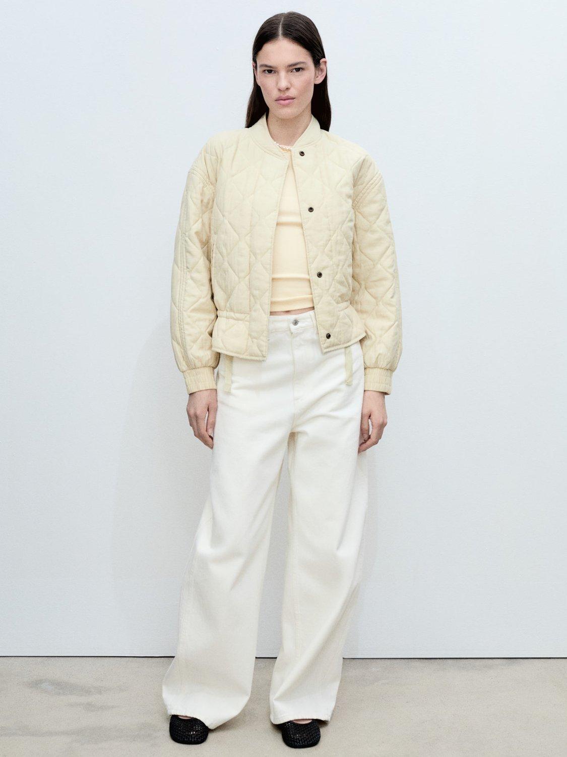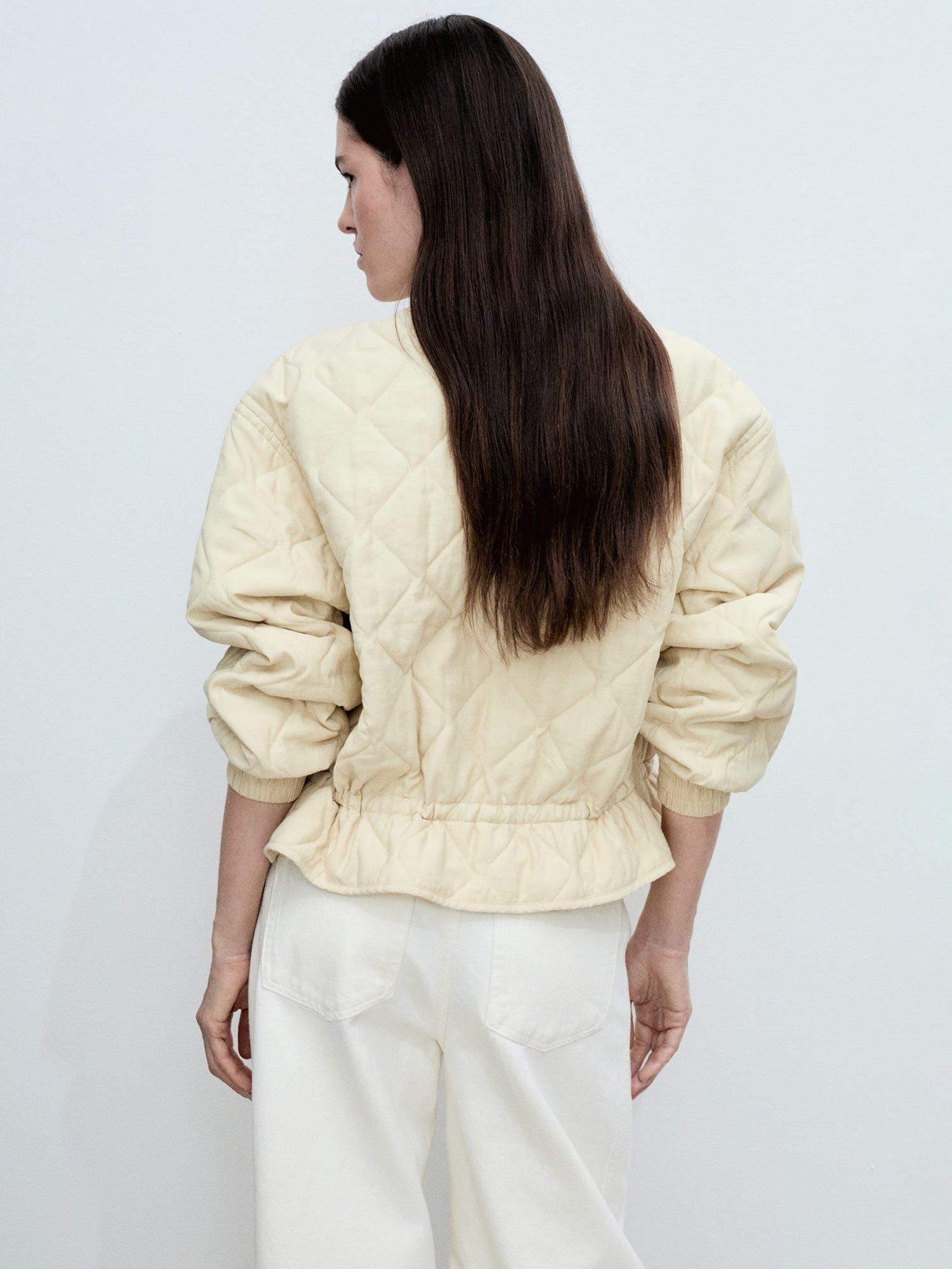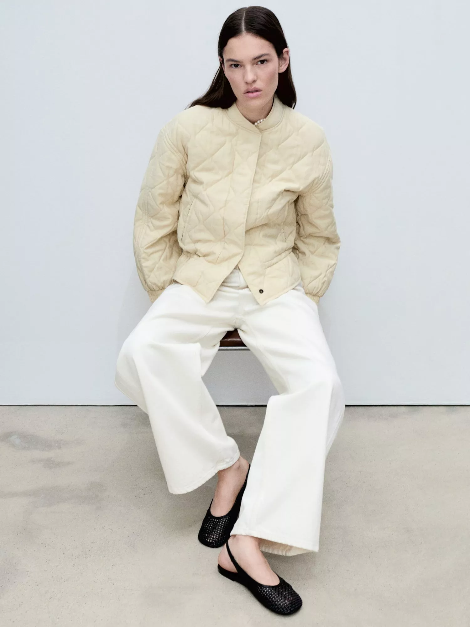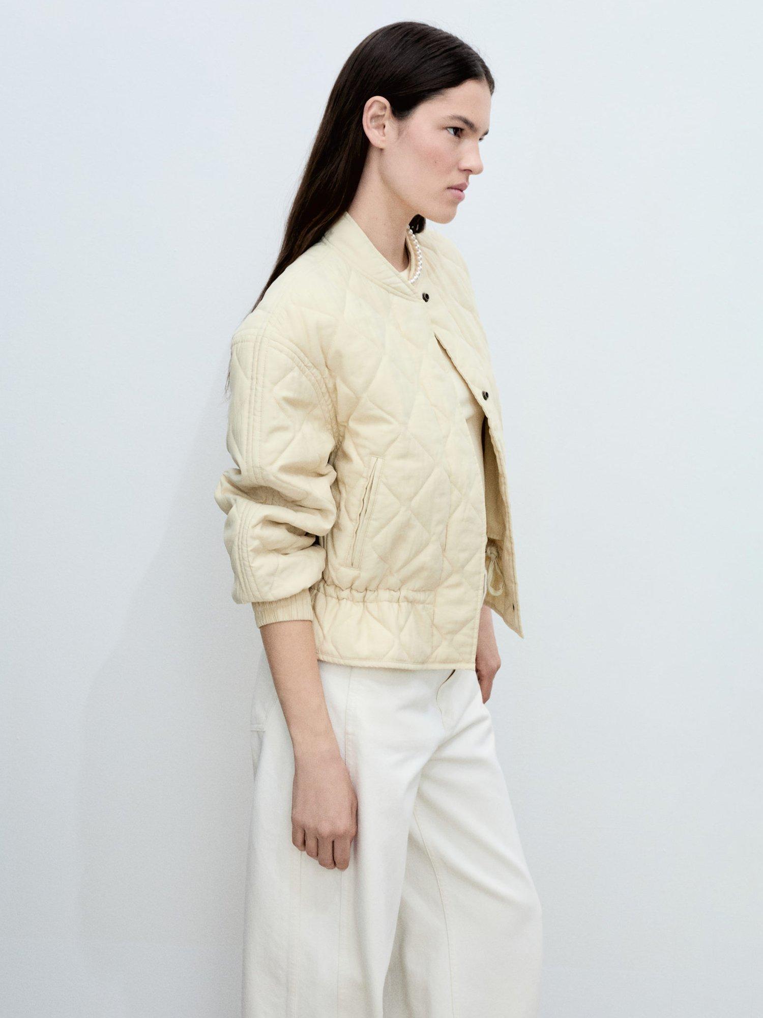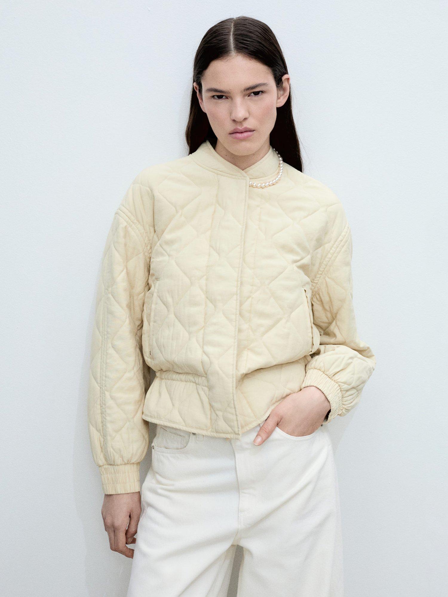 In a distinct bomber style, this quilted jacket by Mango falls to a regular length. With a high neckline, it is made from a smooth blended fabric for lightweight wear.