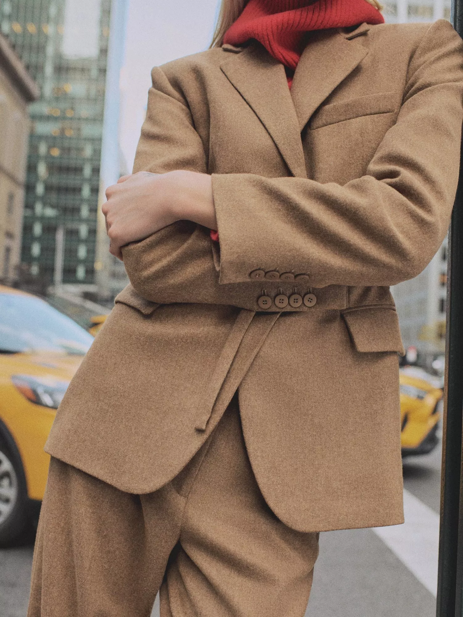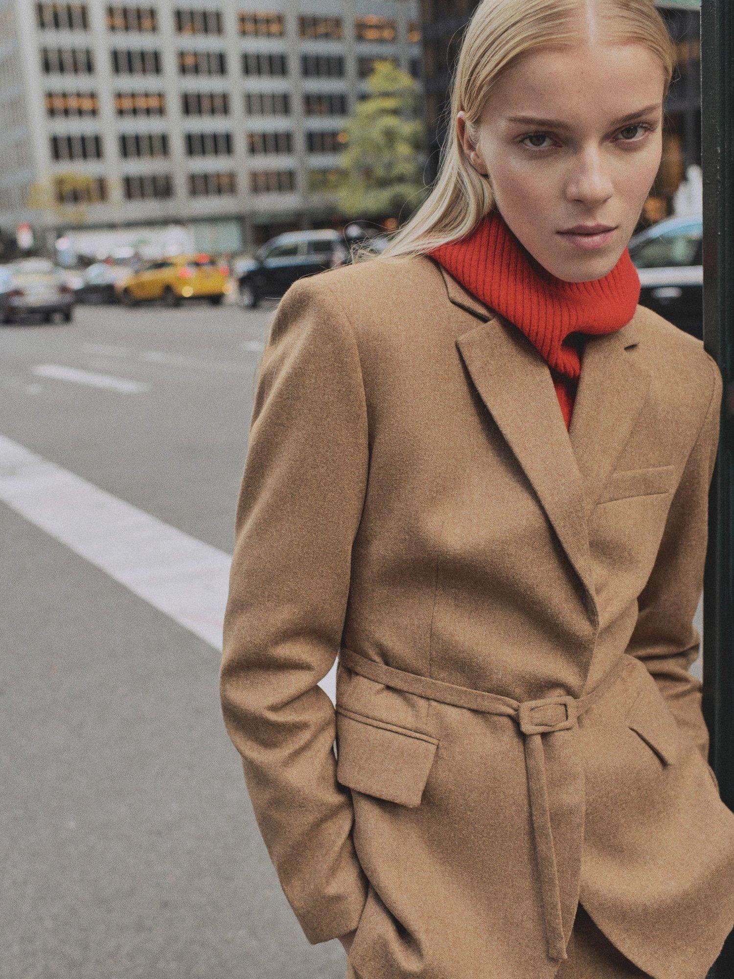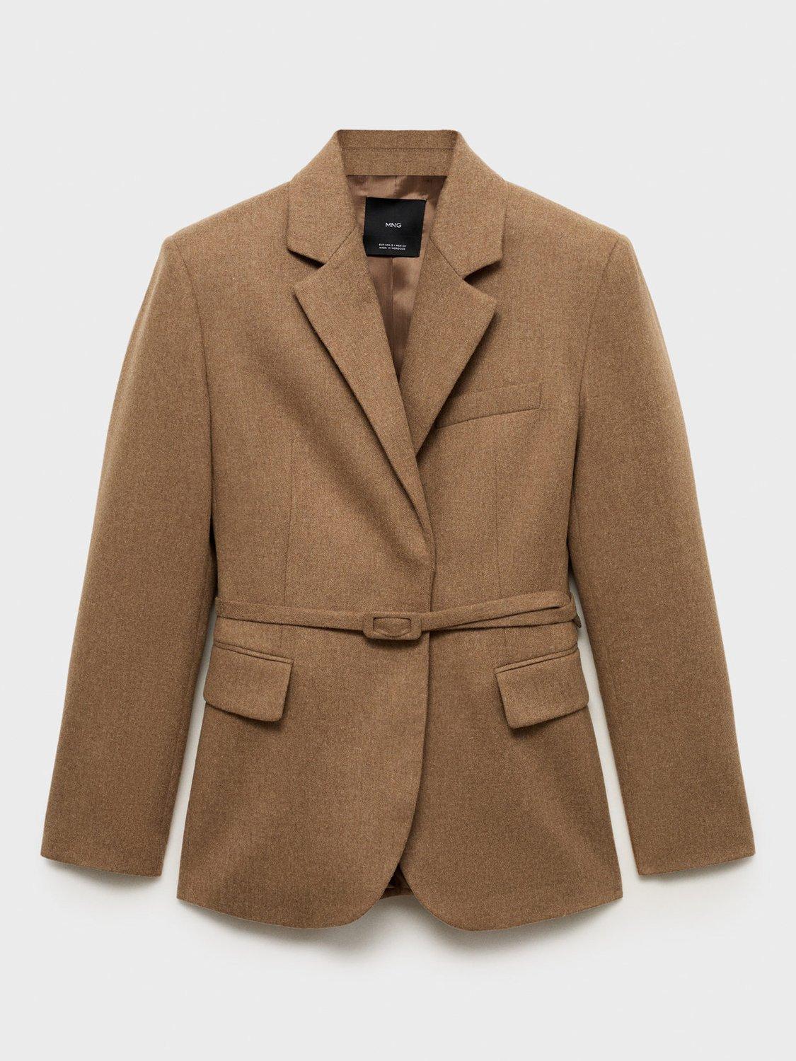 A smart outerwear piece that will pull any look together, this single-breasted blazer from Mango is made from a virgin wool blend with a skinny waist belt.