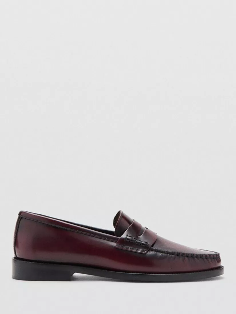 MangoHeritage Leather Penny Loafers, Bordeaux