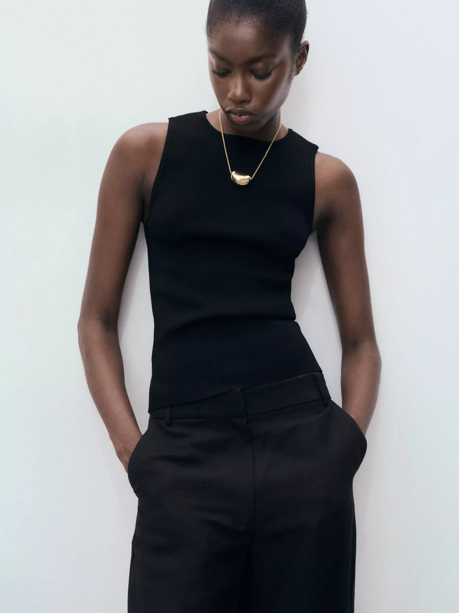Mango’s sleeveless tank top is designed with a finely crafted plain knit and round neck. The blend of viscose ensures comfort, making it an inspired choice for everyday style.