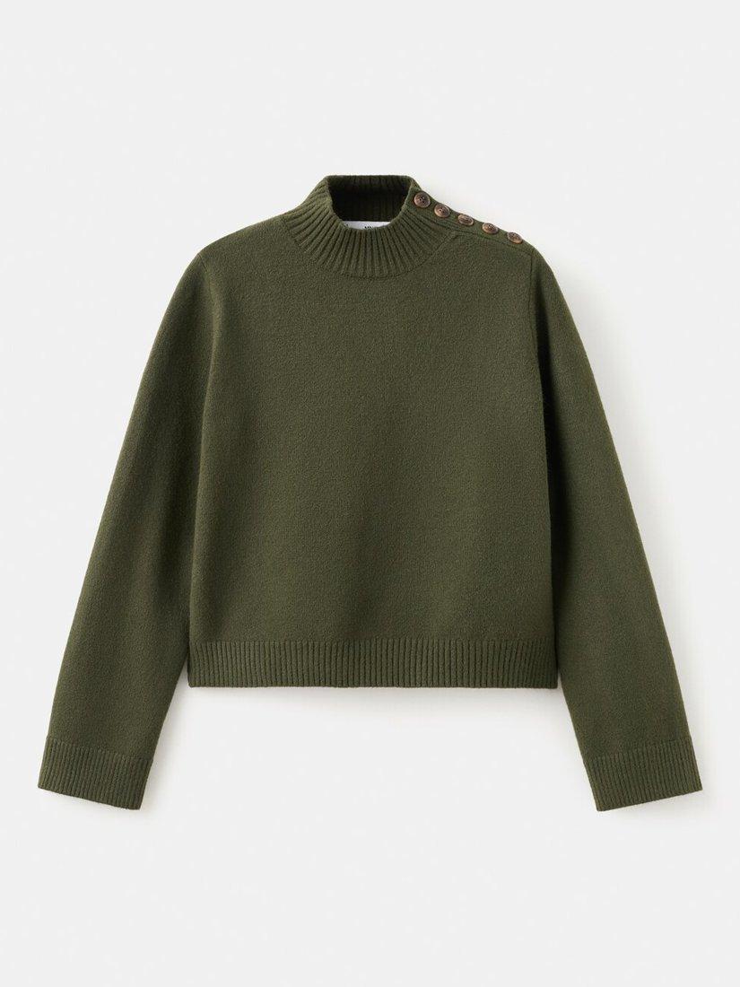 MangoHigh Neck Button Shoulder Jumper, Khaki