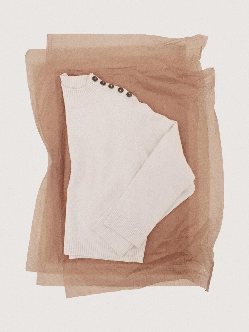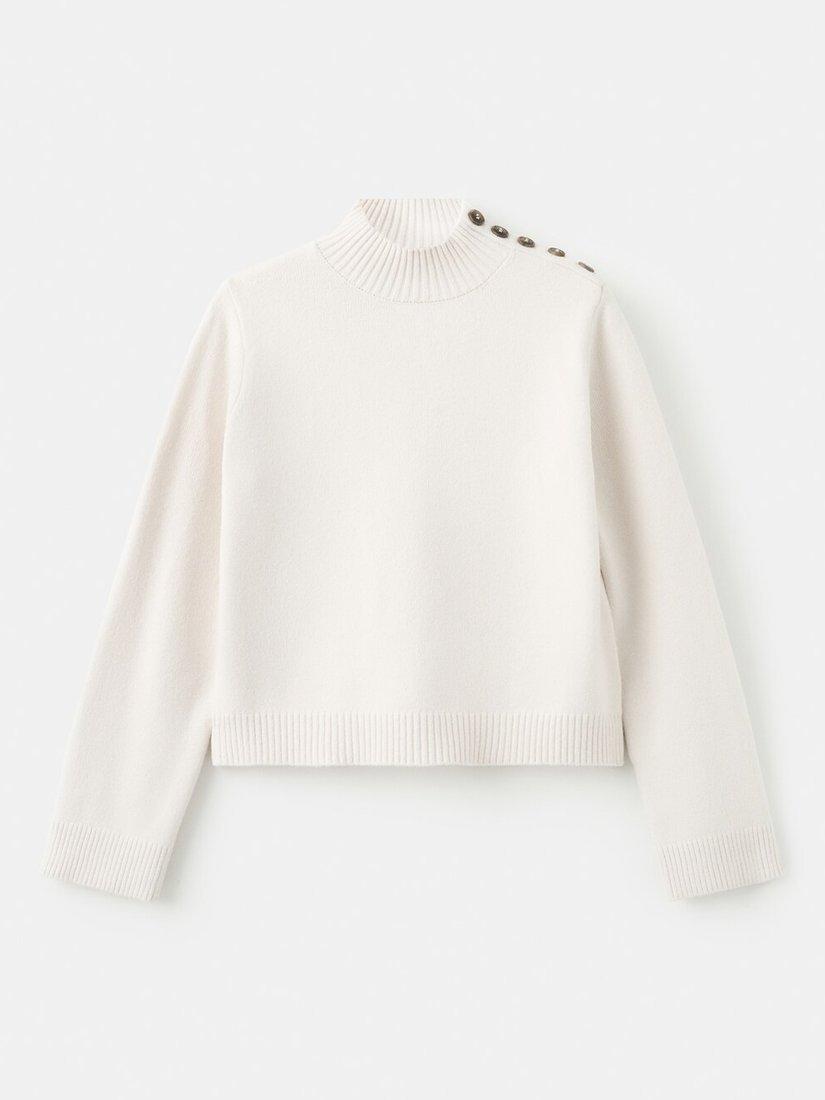 This fine knit jumper features a high neck and shoulder-button detail, with a cropped silhouette that's great for modern layering.
