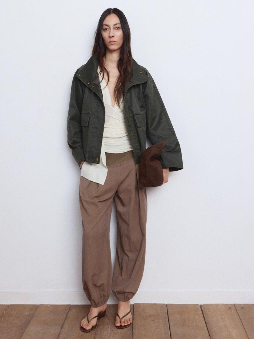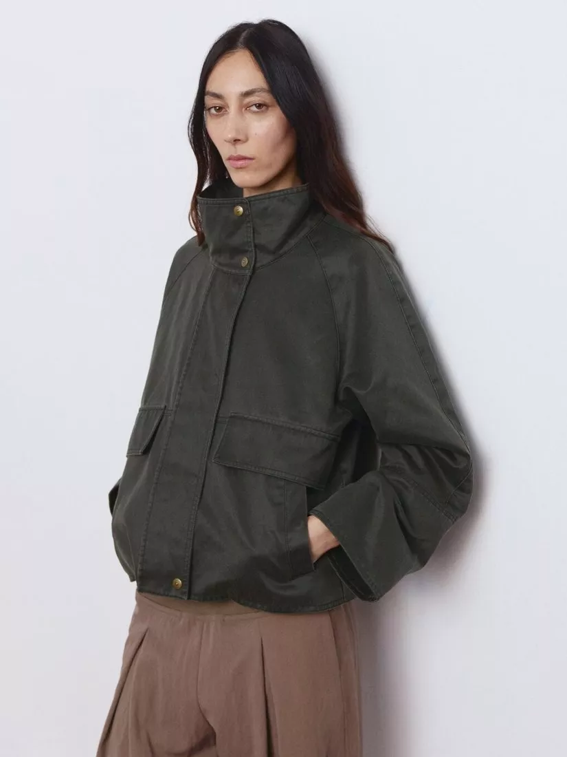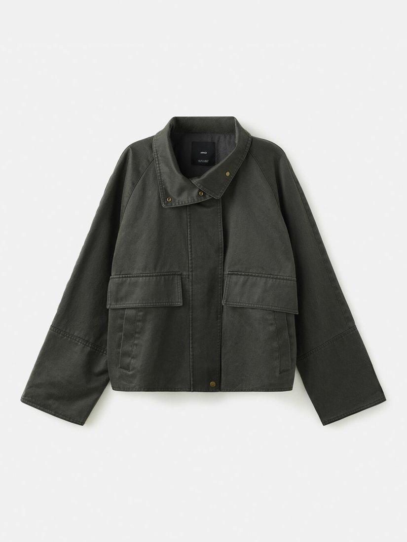 MangoHigh Neck Cropped Parka Coat, Khaki