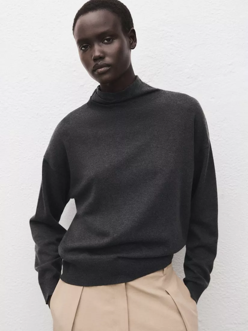 A fine-knit high neck jumper from Mango. Lightweight, soft, and designed for easy movement, long sleeves offer warmth.
