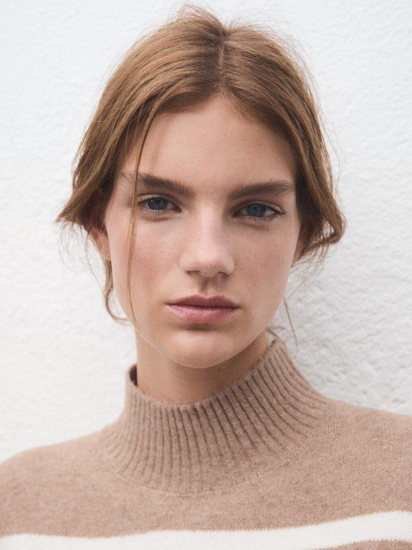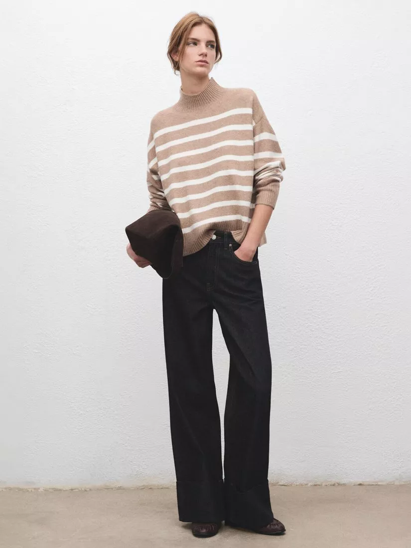 Oversized in cut, this mid-weight high neck jumper from Mango has an always on-trend stripe pattern.