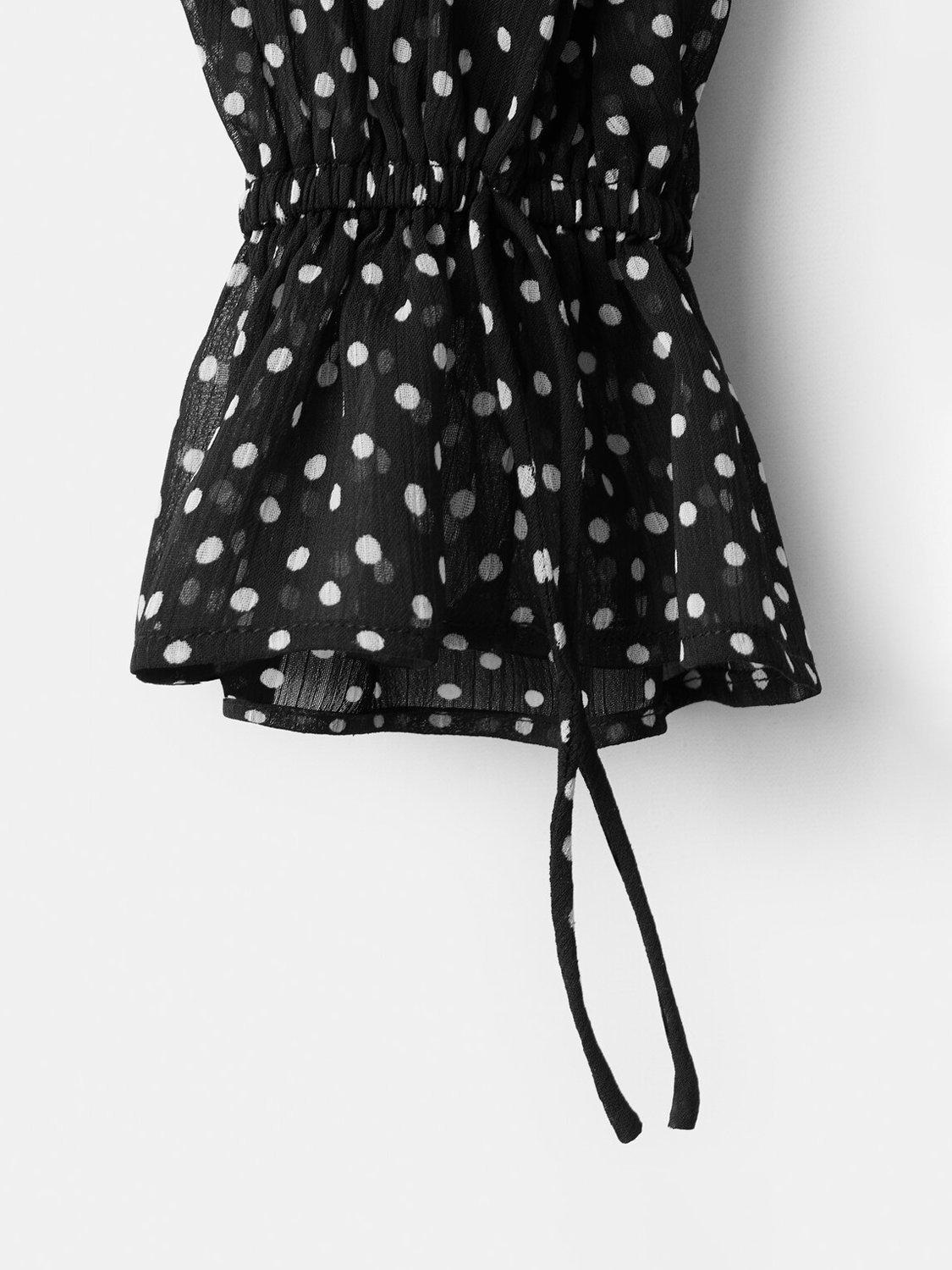 A blouse by Mango. Featuring a high neck and long sleeves, it has a classic polka dot print. Built for focus, made for comfort.