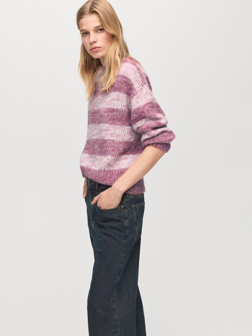 This fluffy knit jumper features a classic crew neck and playful stripes, offering comfort that adapts to your day. With long sleeves and a soft touch for comfort in any setting.