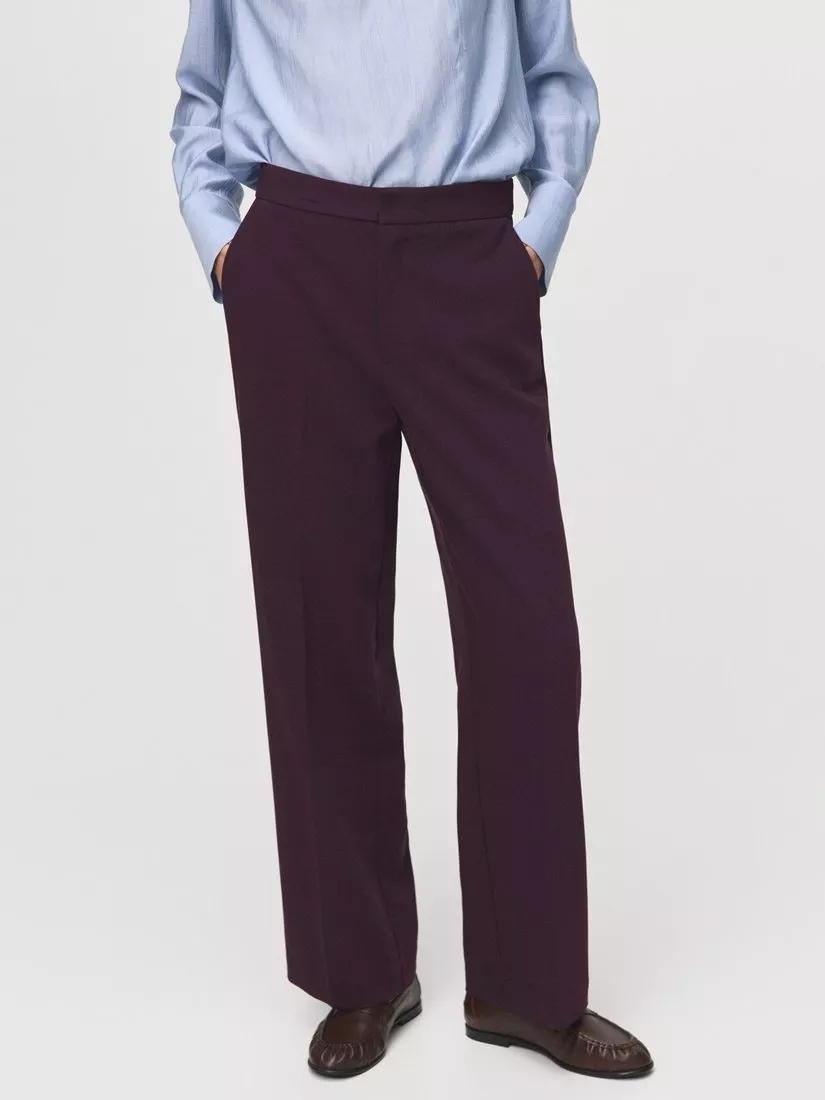 MangoHigh Rise Straight Tailored Trousers, Damson