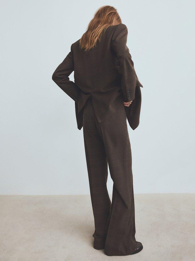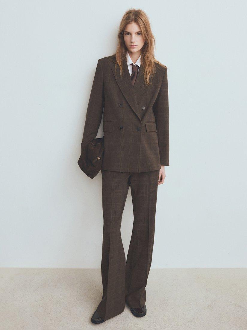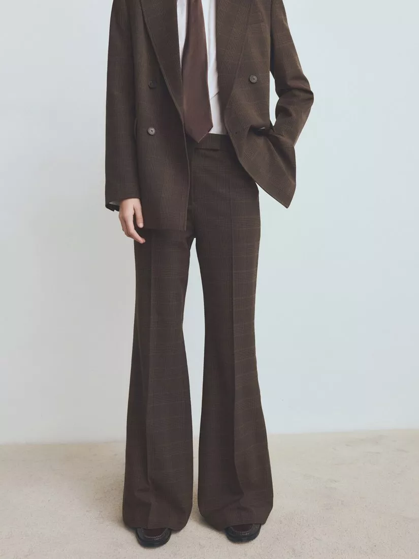 A pair of flared leg trousers from Mango. This style is cut to sit higher on the hips with a zip fastening and hems that fall to a regular length.