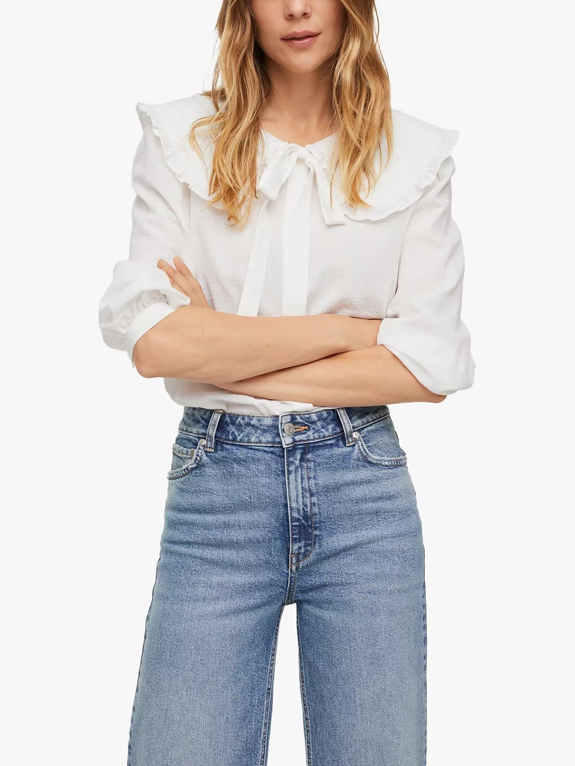 Framed with a tie neck with a wide collar, it offers a soft feel thanks to its cotton blend and falls perfectly under the 'jeans and a nice top' code.