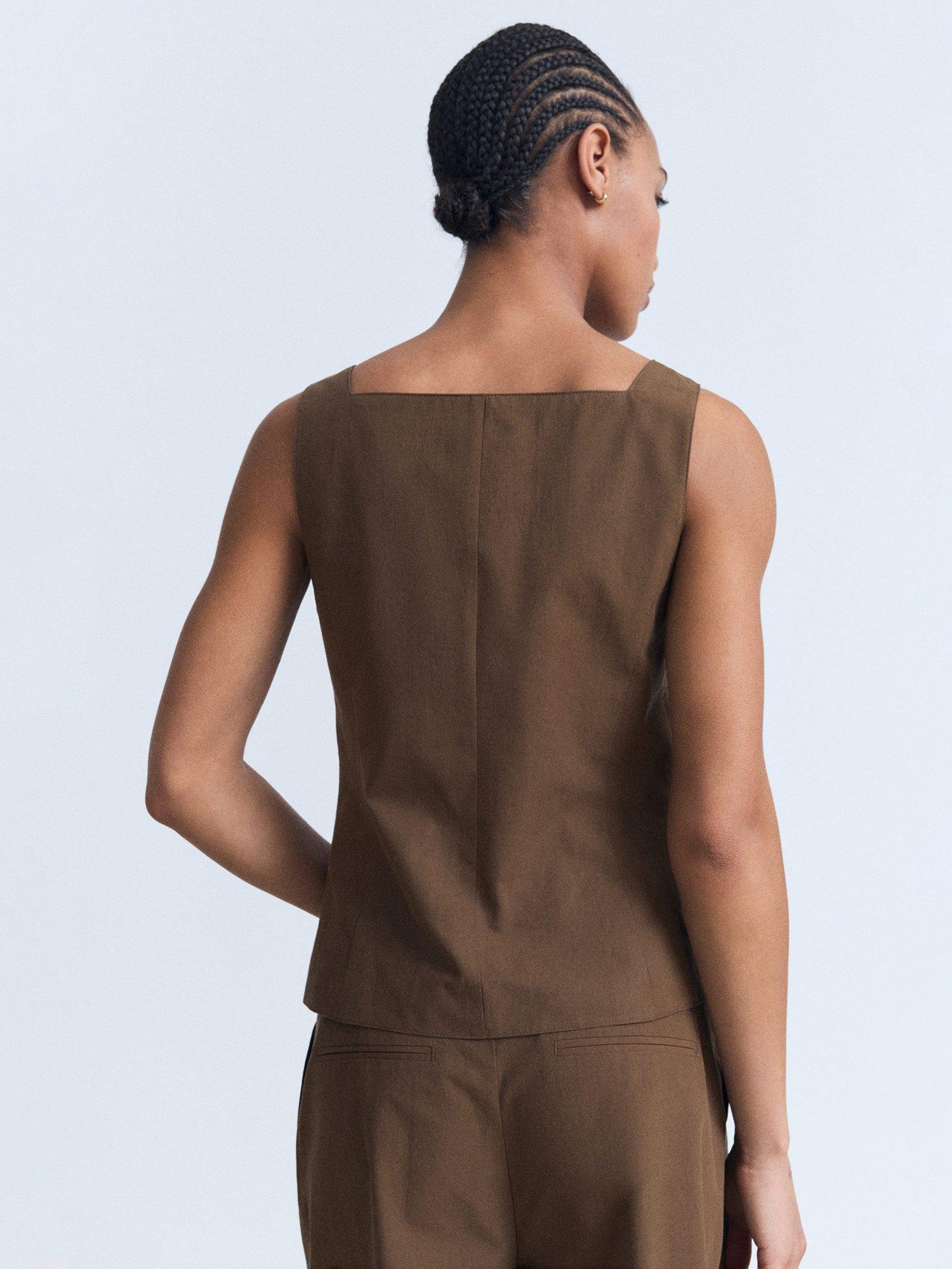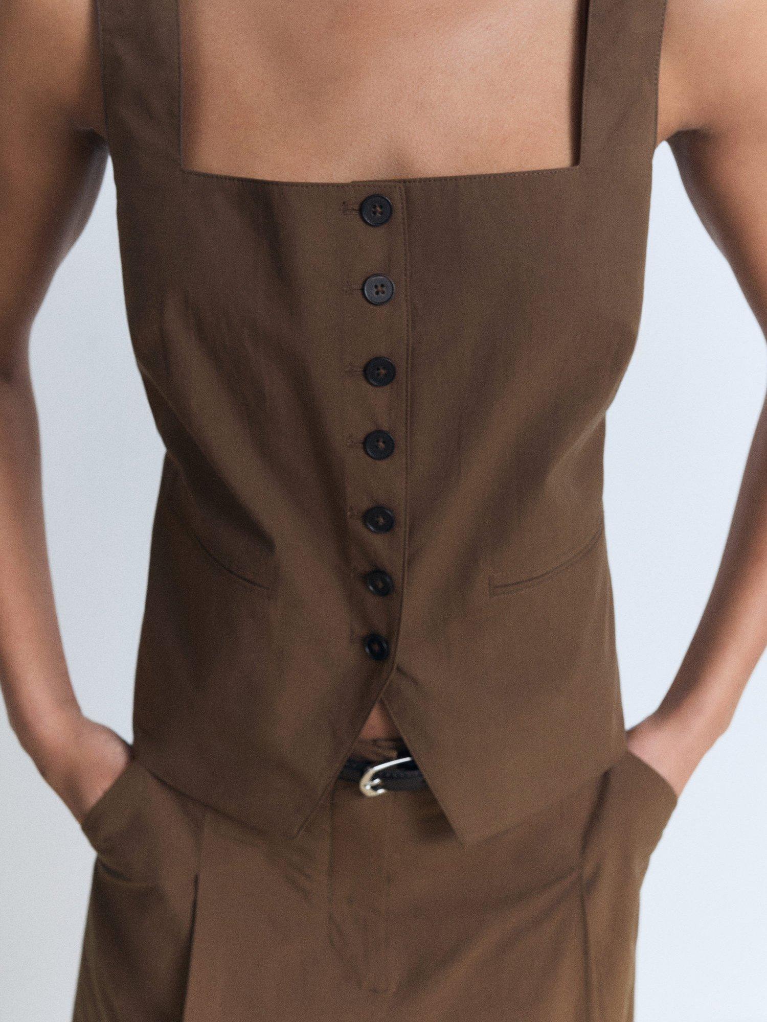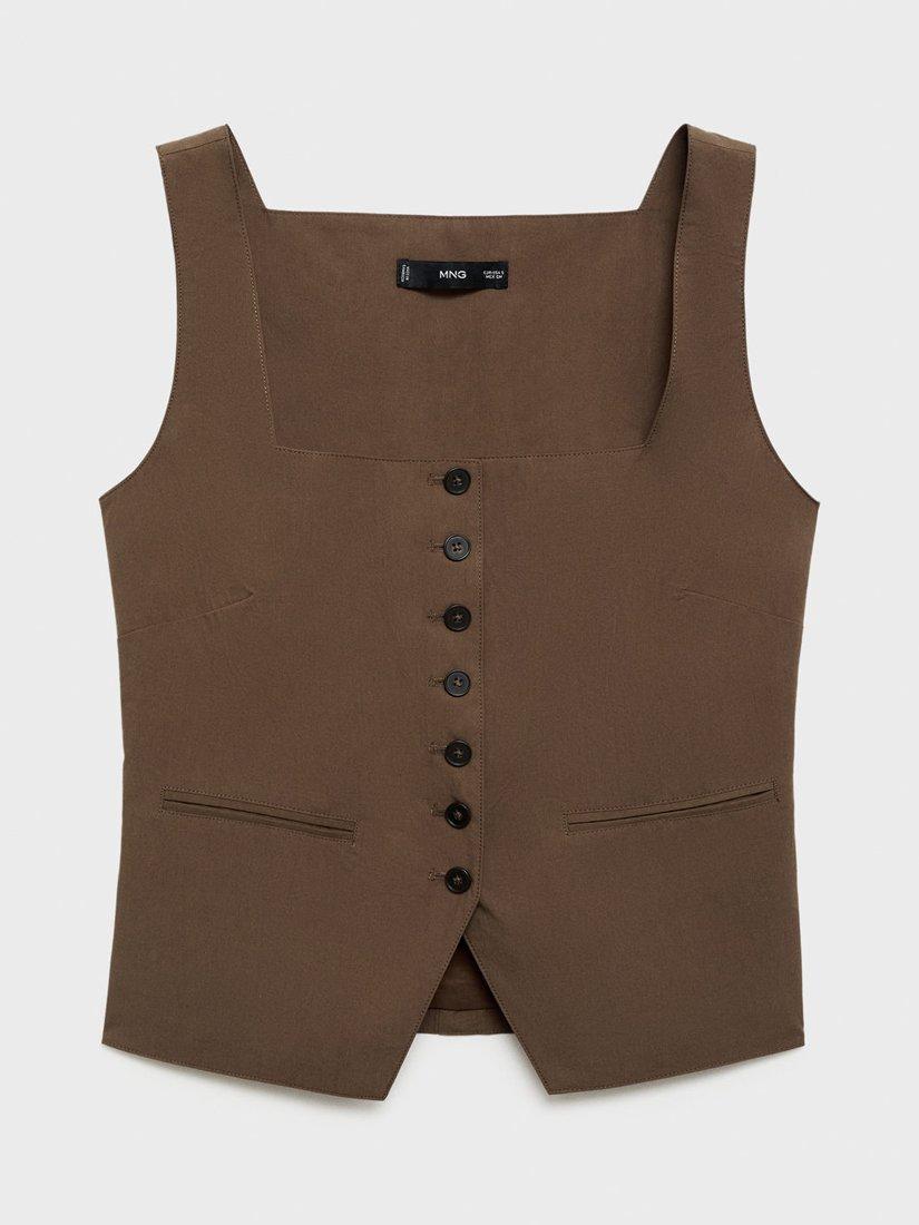 With a contemporary square neckline, this waistcoat fom Mango has a soft and breathable fit thanks to its cotton fabrication.