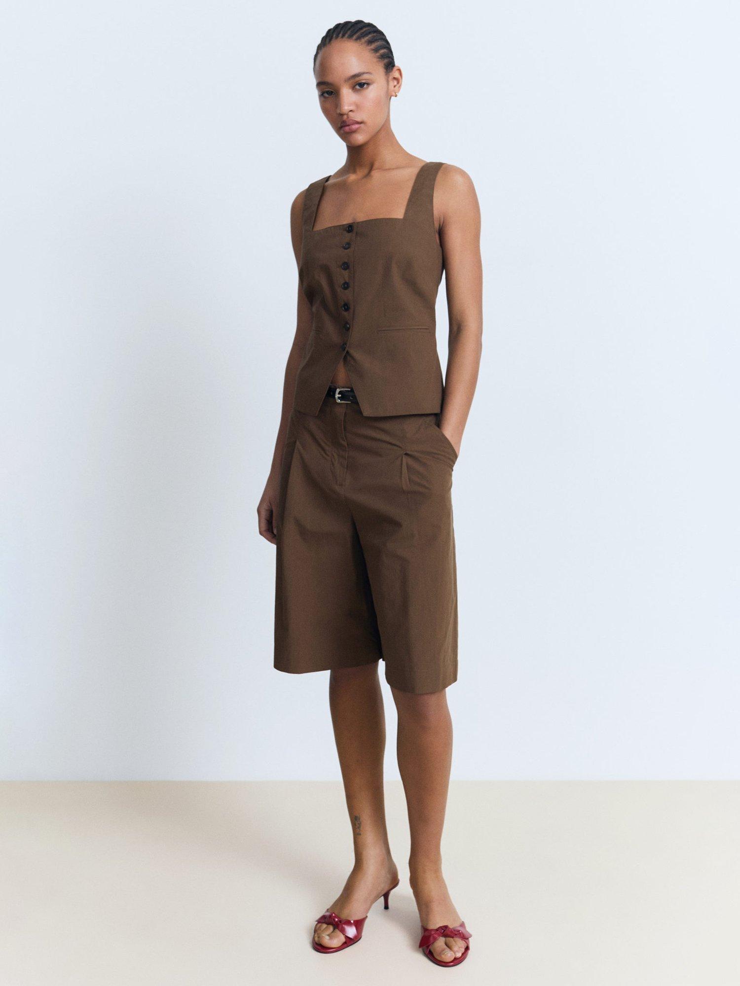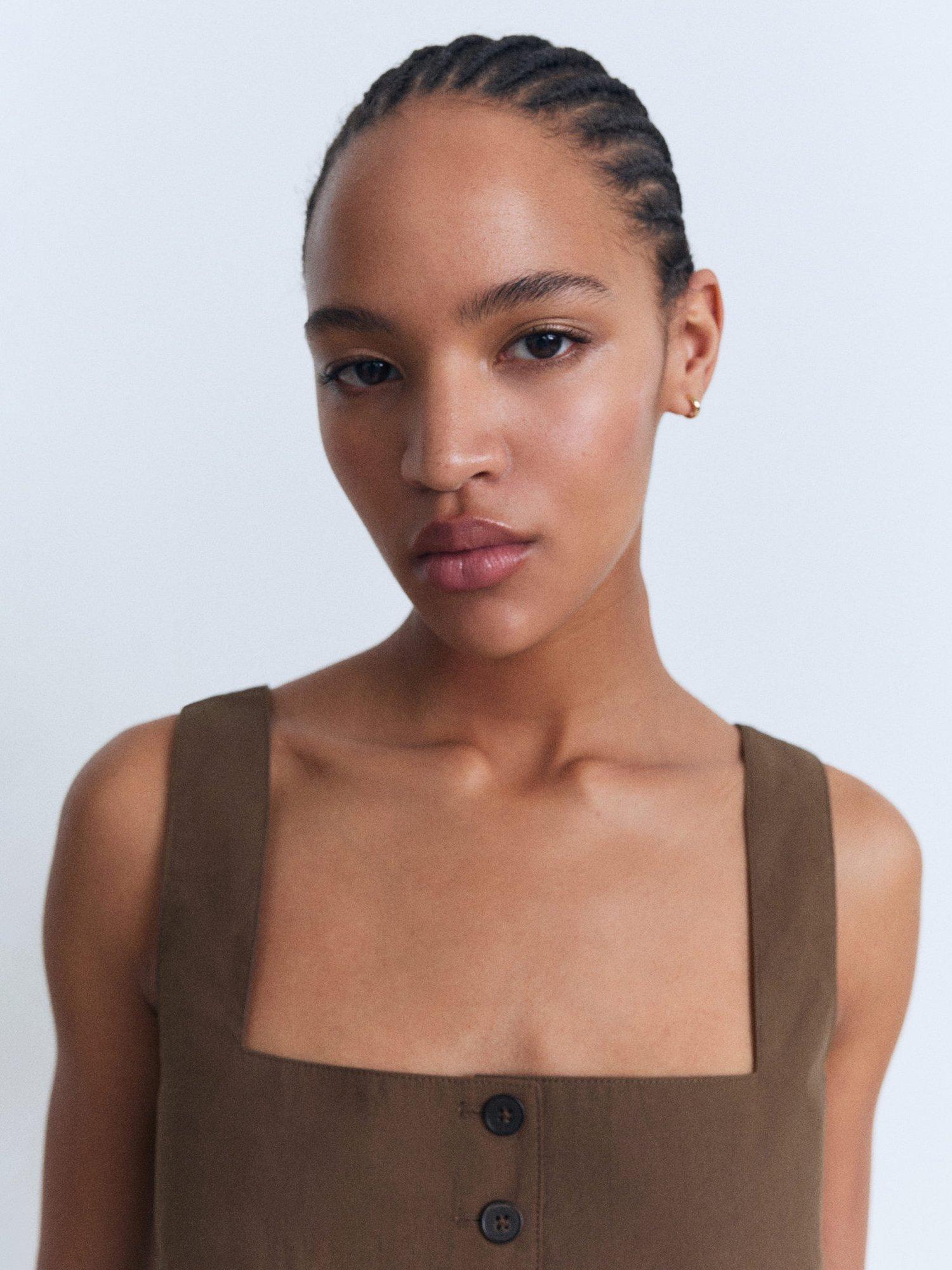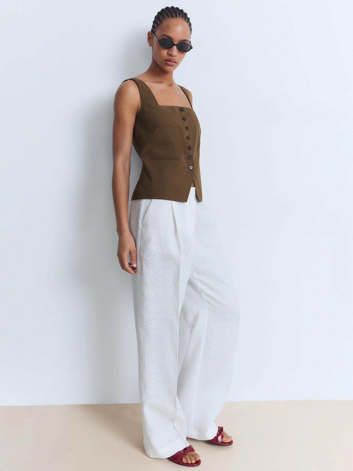 With a contemporary square neckline, this waistcoat fom Mango has a soft and breathable fit thanks to its cotton fabrication.