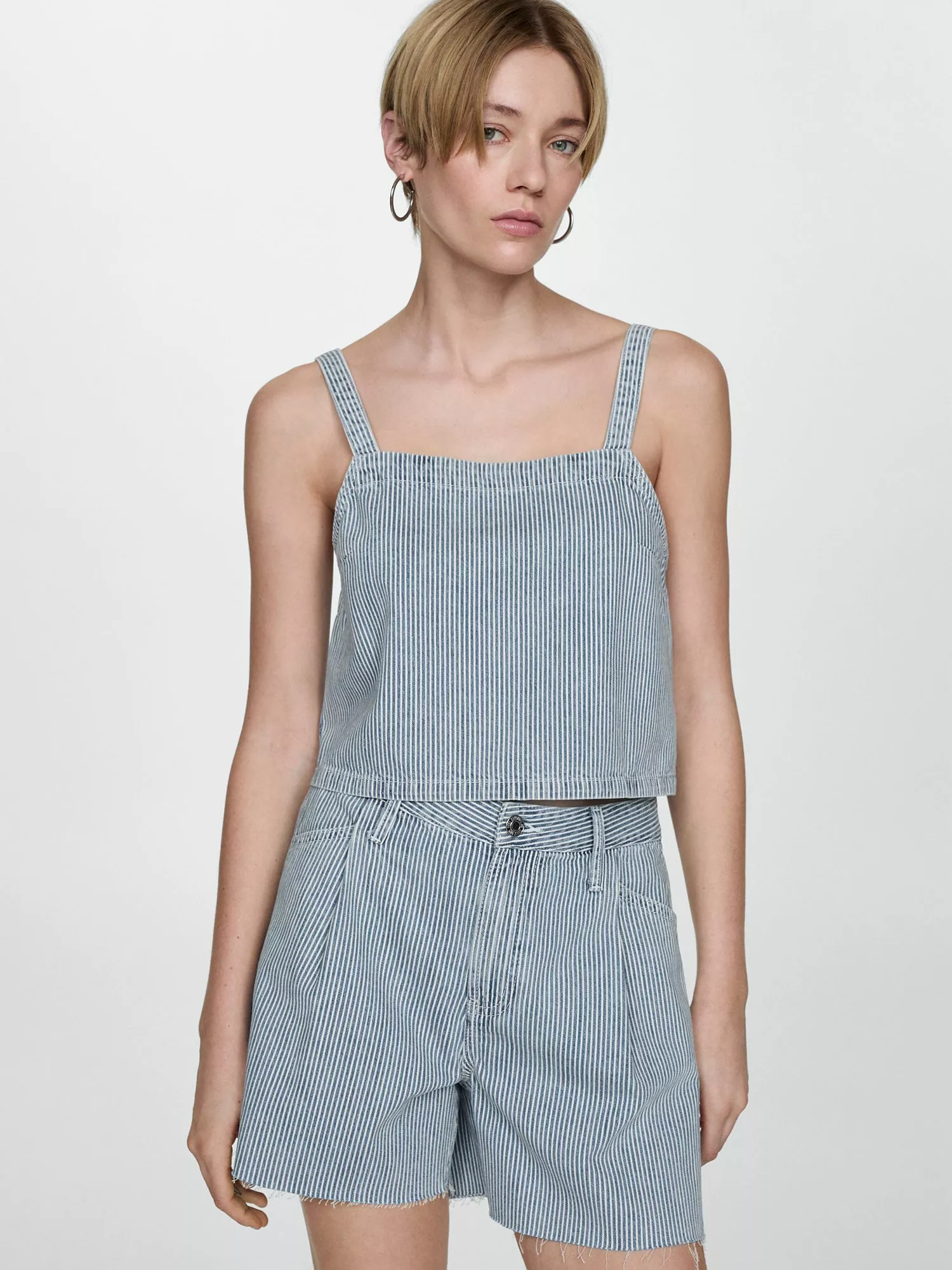 MangoIbiza Stripe Denim Crop Top, Medium Blue