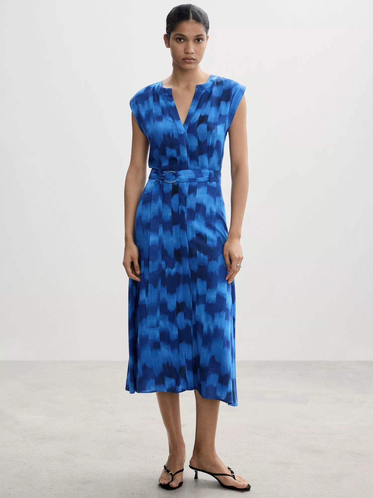 Entirely flattering with its A-line shape, this midi dress from Mango is made from liquid-like viscose. With a universally flattering v-neckline and short sleeves, it showcases an intriguing, abstract print.